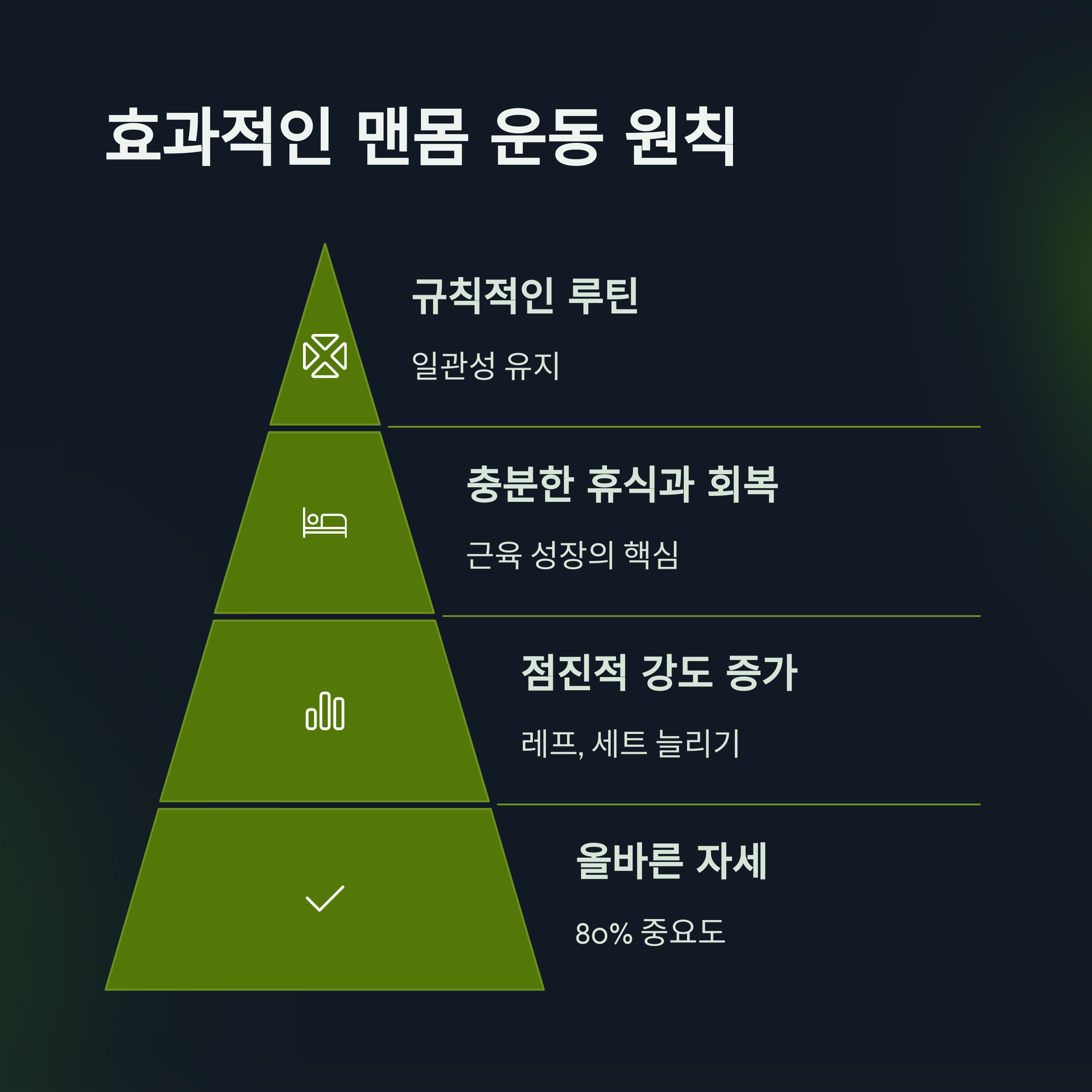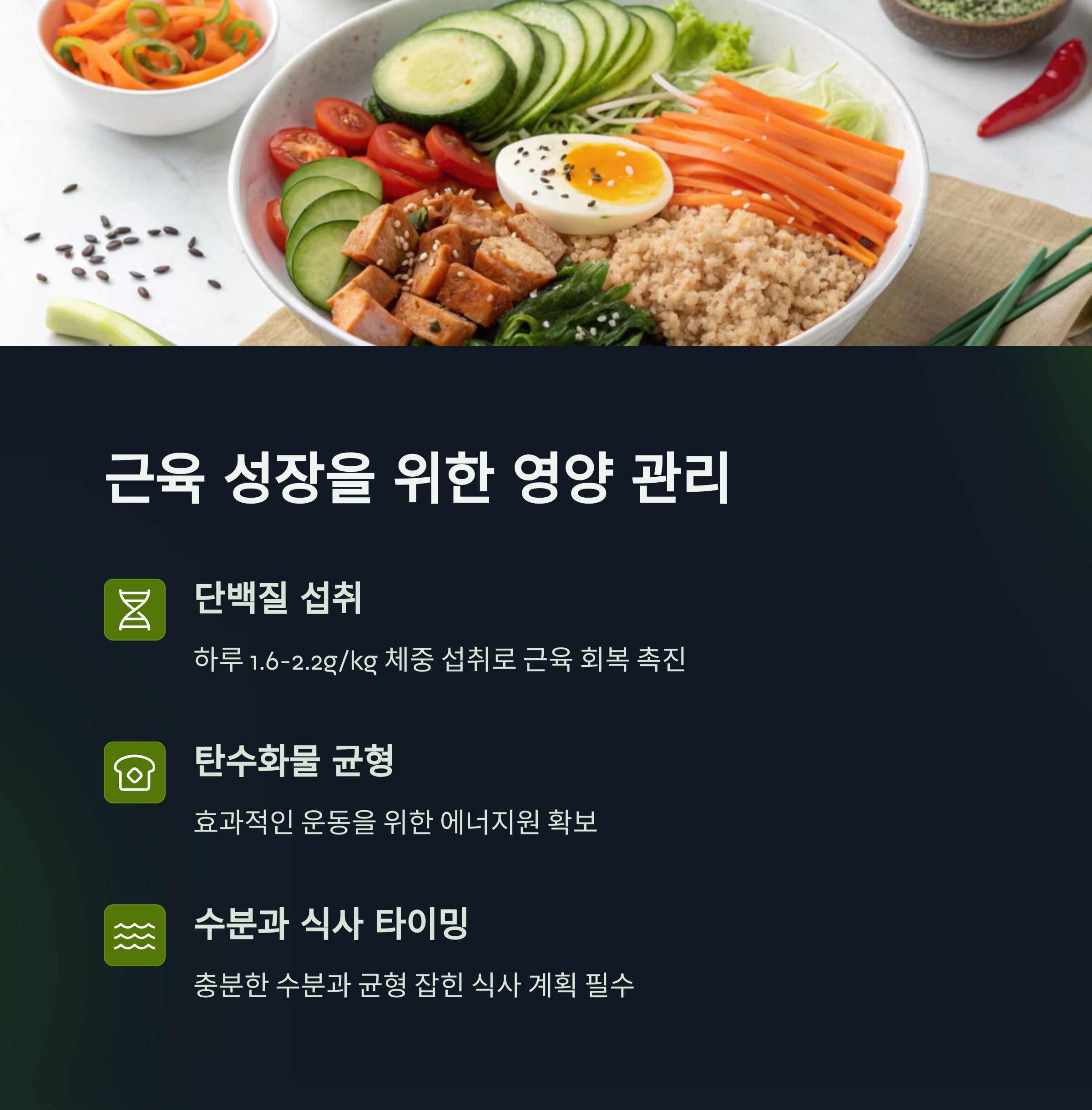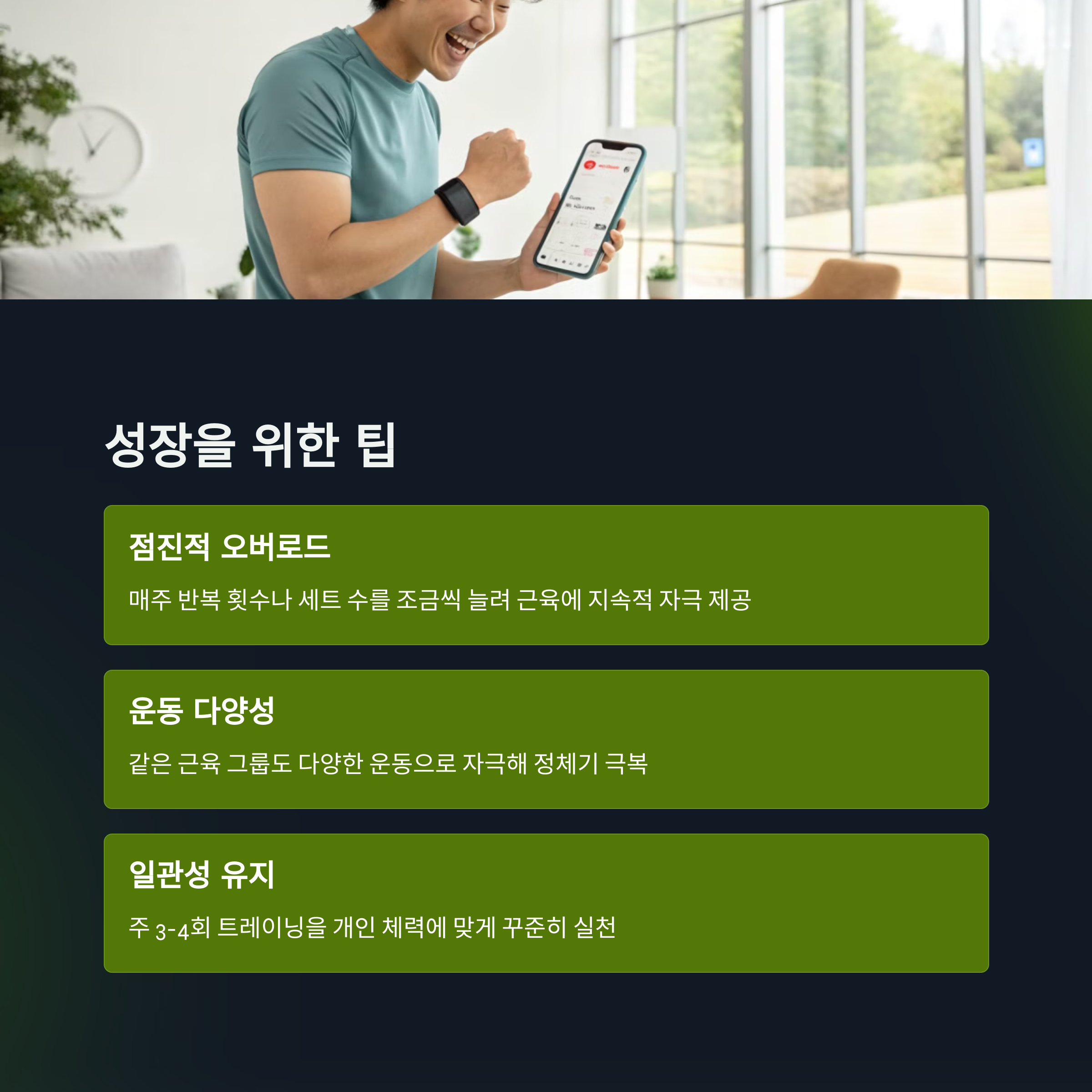 | 근육 생성 원리 | 자극, 회복, 반복을 통해 근육은 점점 커집니다. |
