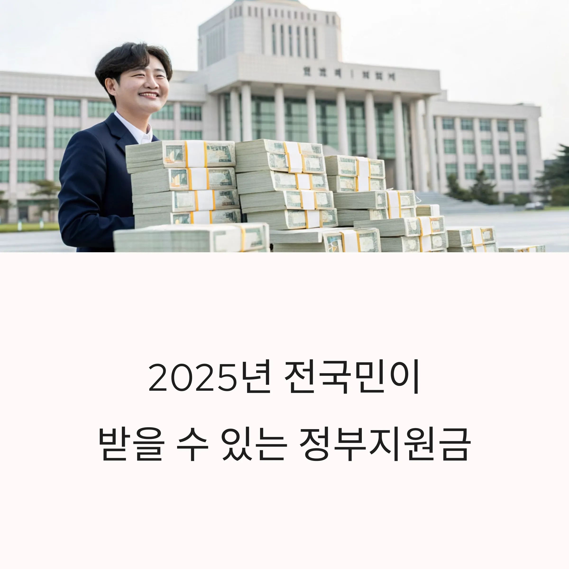 2025년 하반기부터 전국민을 대상으로 1인당 25만 원이 추가로 지급될 예정입니다. 취약계층(기초생활수급자, 차상위계층 등)에게는 10만 원이 추가로 지원됩니다. 지급 방식은 지역화폐와 카드 포인트로, 전국 정부지원금 종류 중 가장 실질적인 생활 안정 정책으로 평가받고 있습니다