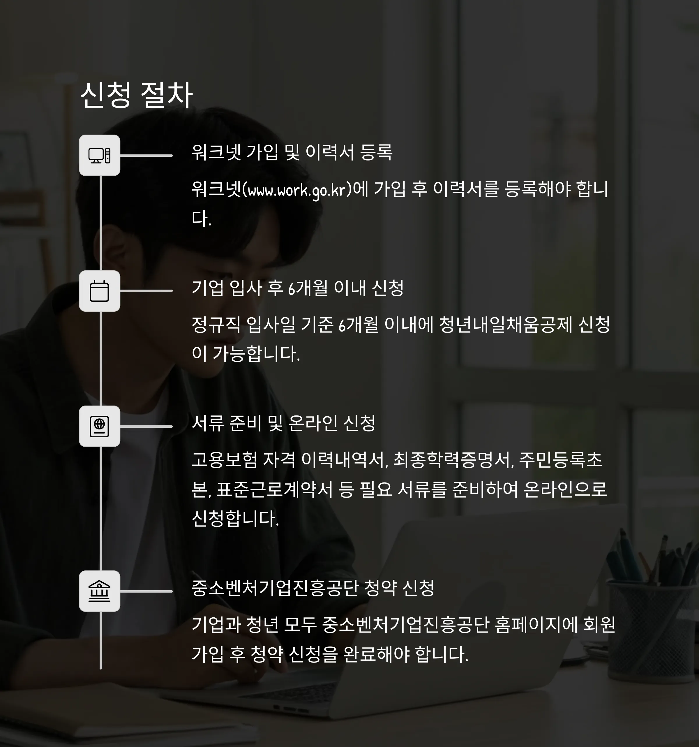 기업과 청년 모두 중소벤처기업진흥공단 홈페이지에 회원가입 후 청약 신청을 완료해야 합니다.