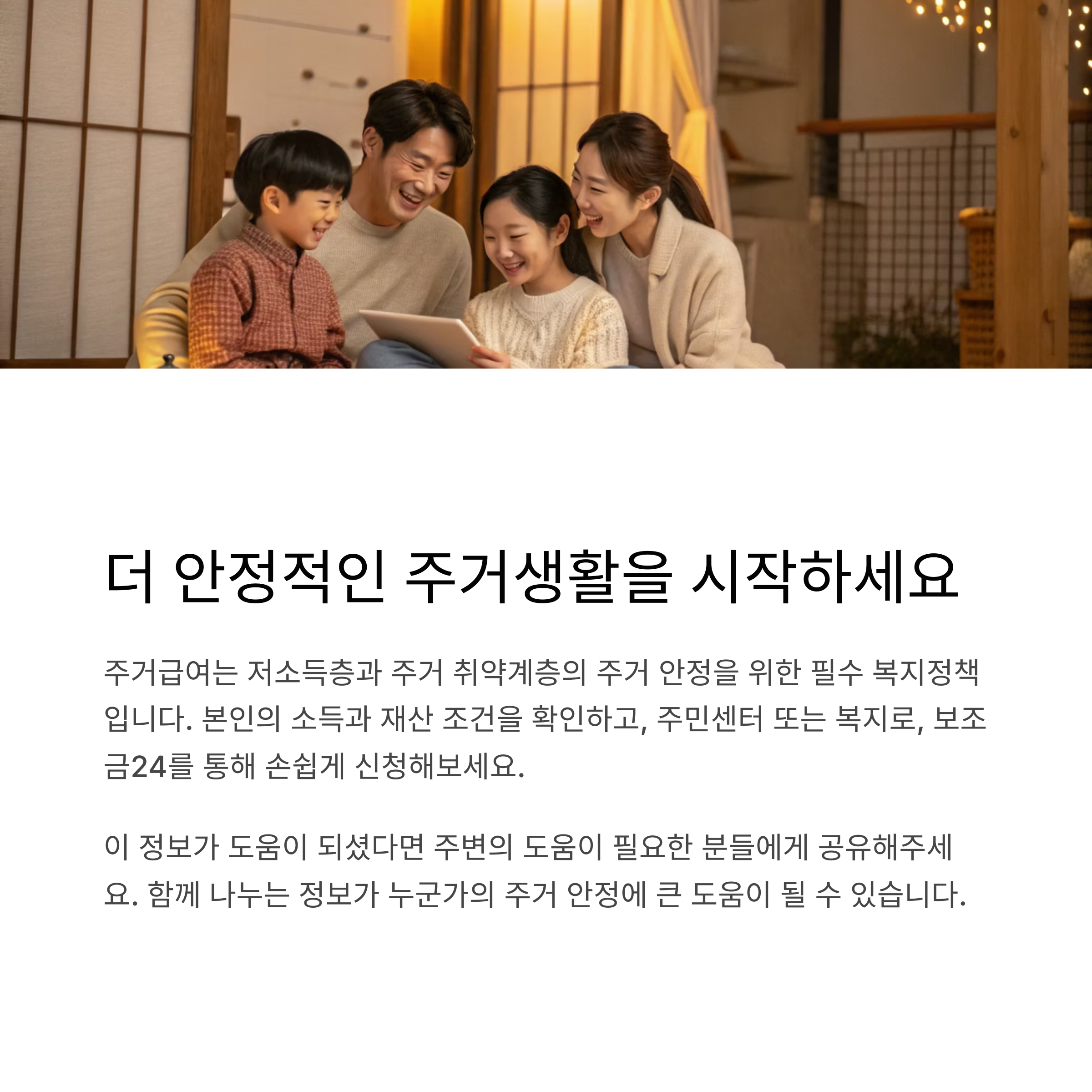올해도 주거급여로 더 안정적인 주거생활을 준비하시기 바랍니다.