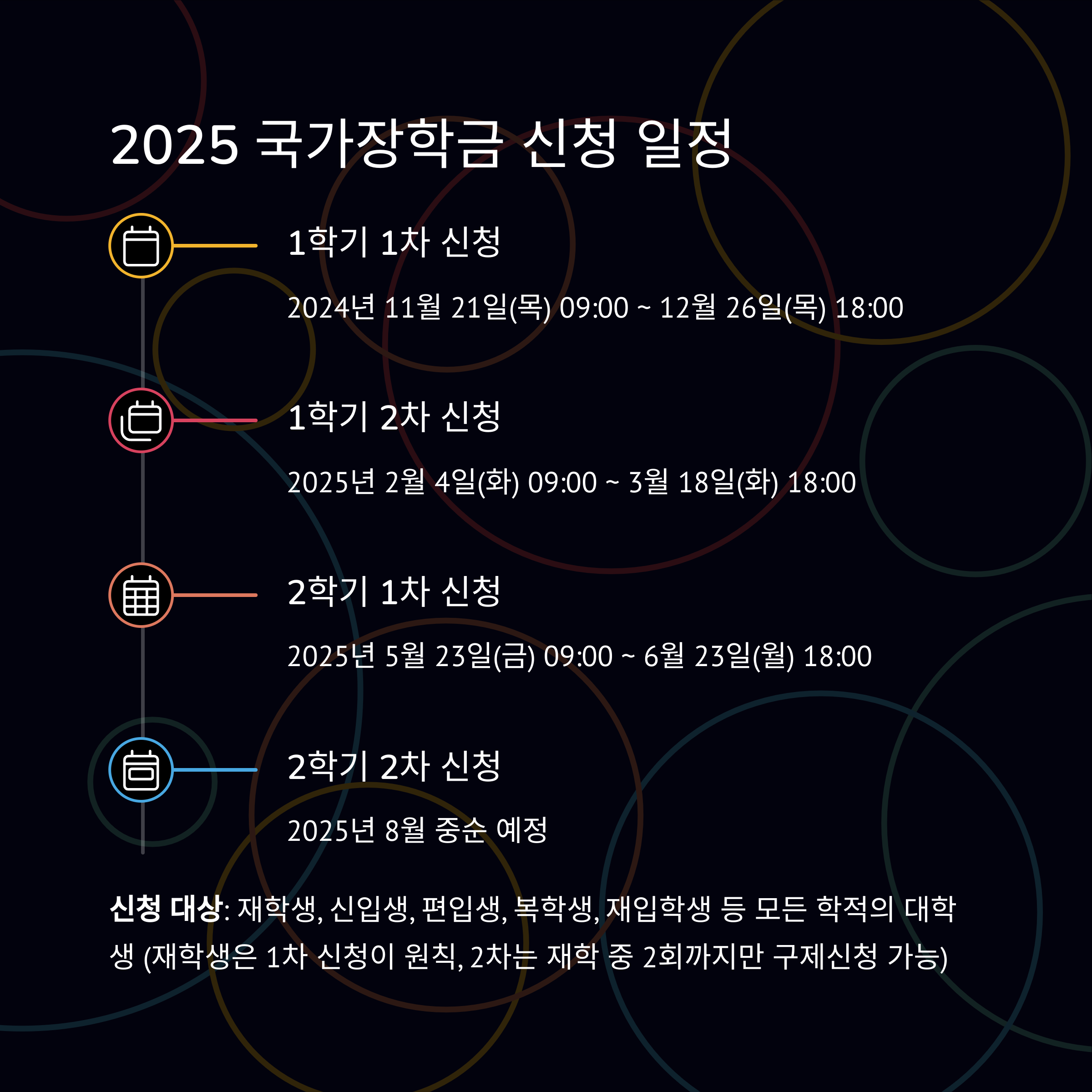 - 교내·외 장학금과 중복 수혜 가능(등록금 범위 내)