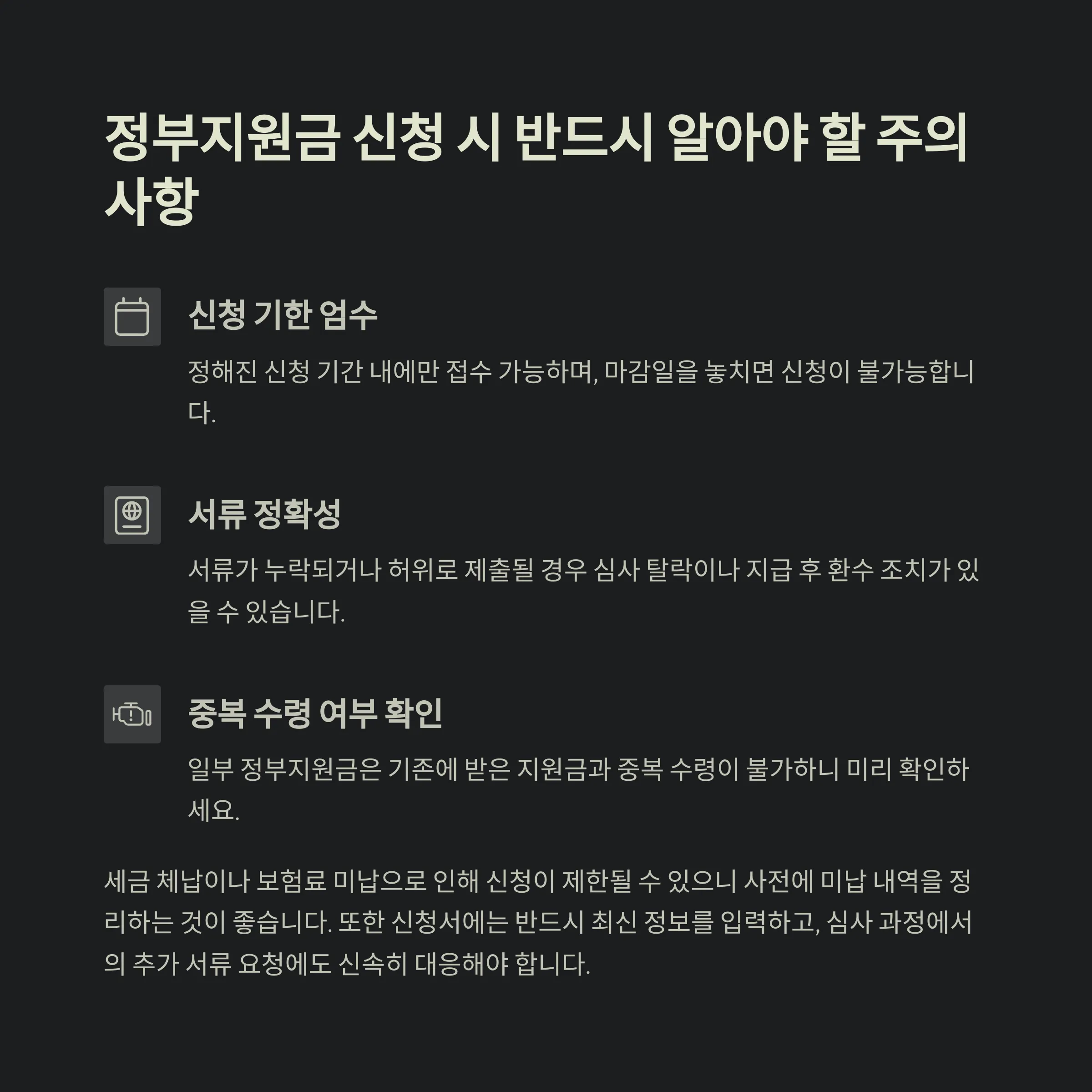 3. 정부지원금 신청 시 주의사항