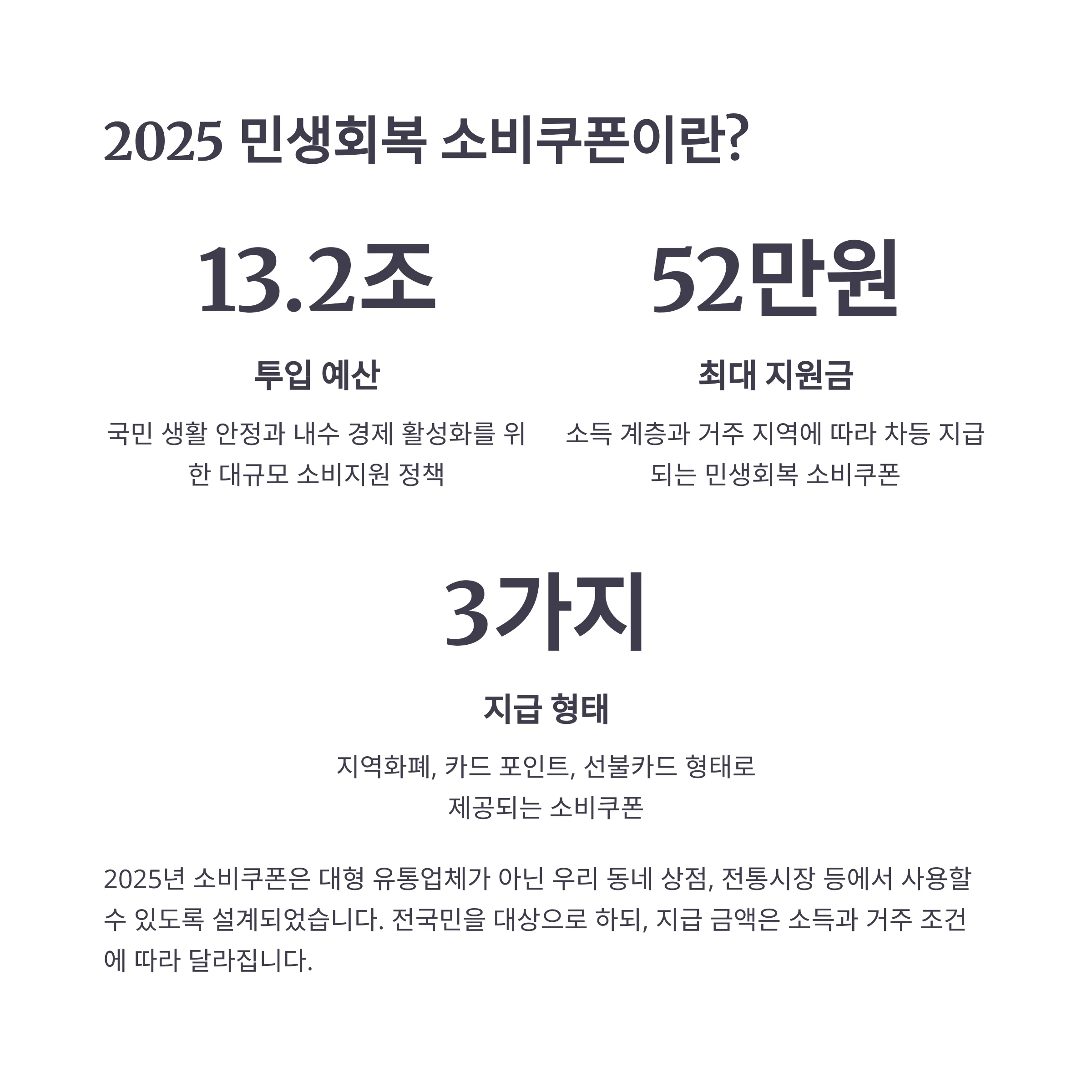 2025 민생회복 소비쿠폰은 13조 2천억 원 규모의 예산이 투입된 대형 소비지원 정책입니다.