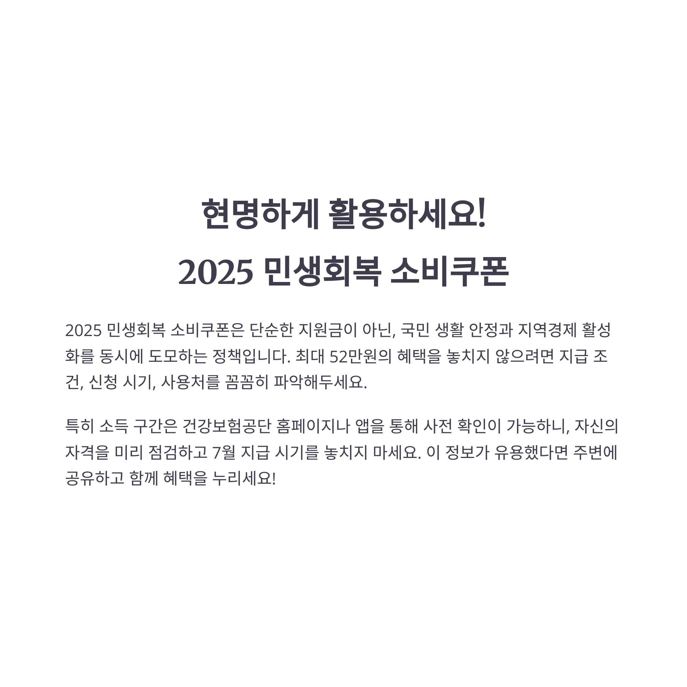 2025 민생회복 소비쿠폰은 단순한 지원금이 아닙니다.