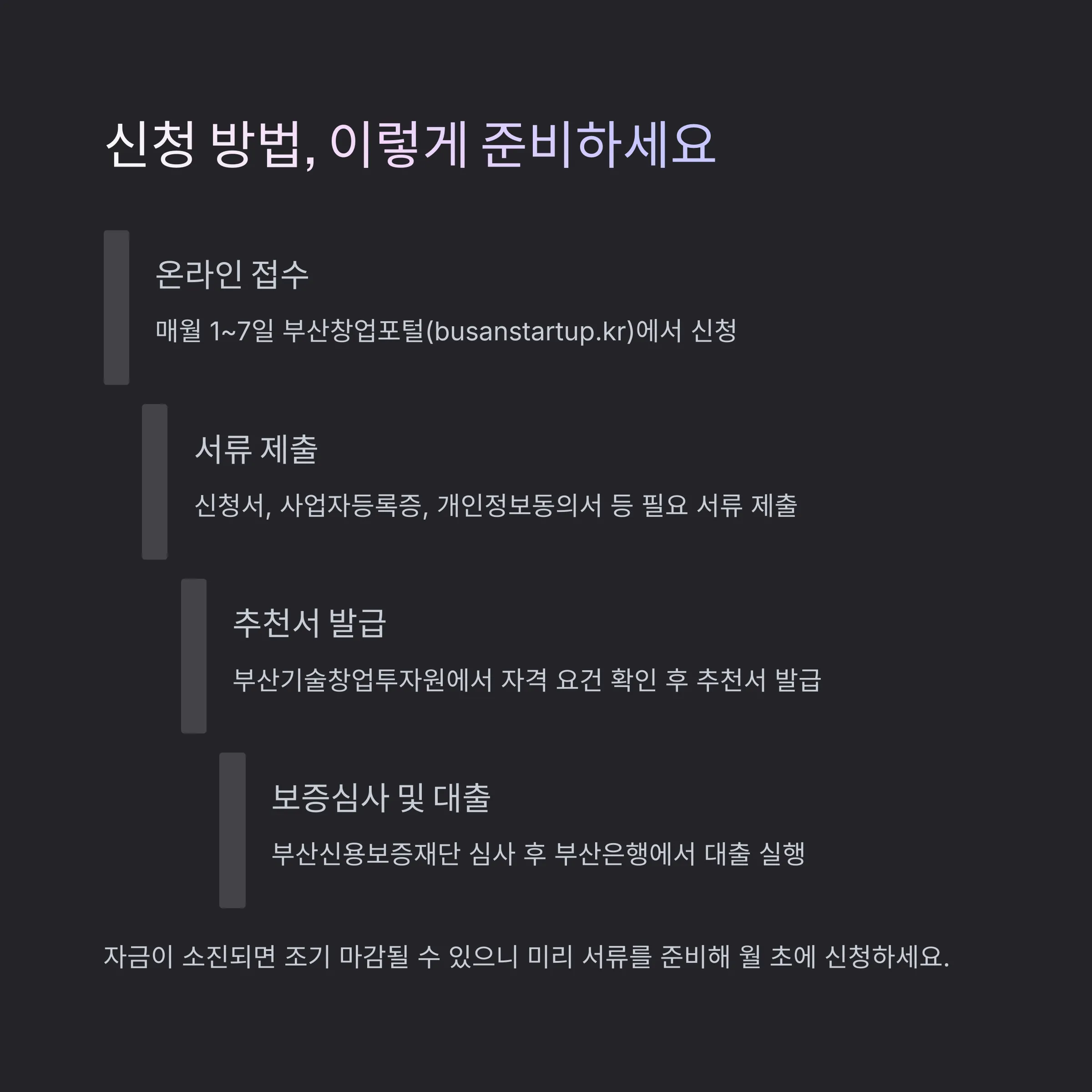 자금 소진 시 조기 마감될 수 있으니 서류를 미리 준비해 두세요.