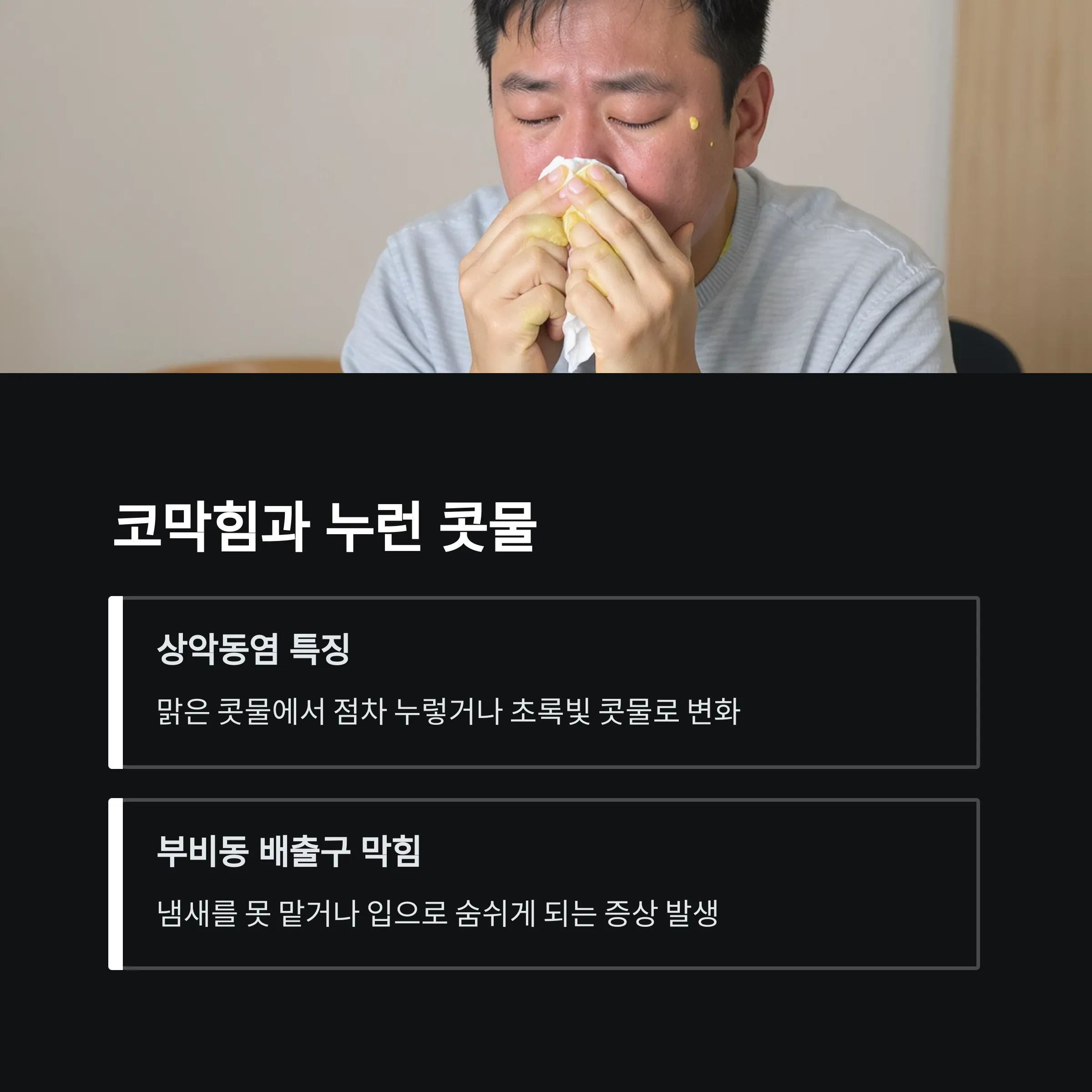 상악동염 증상에서는 콧물이 점차 누렇거나