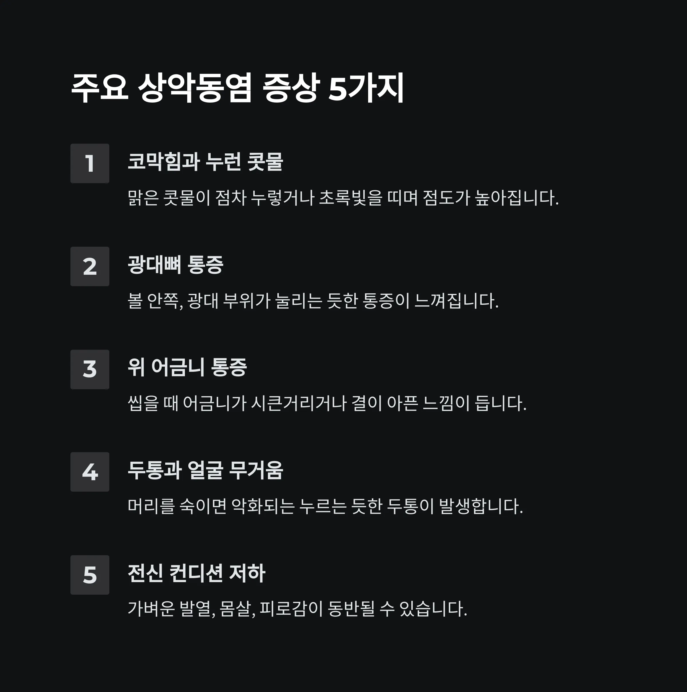 상악동염 증상에 대해 꼼꼼하게 정리해드릴게요.