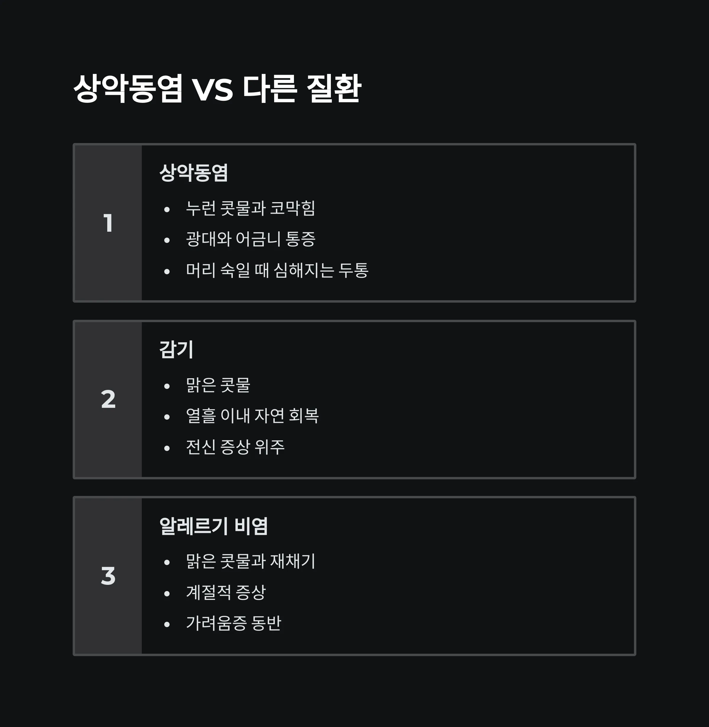 감기, 알레르기 비염, 치과질환과 헷갈릴 수 있습니다.