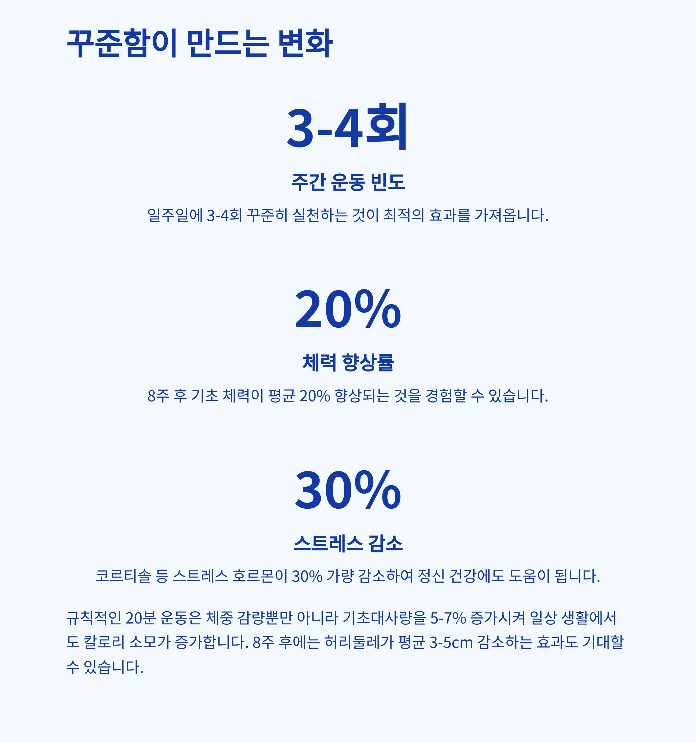 | 운동 시간 | 퇴근 후 단 20분이면 충분합니다 |