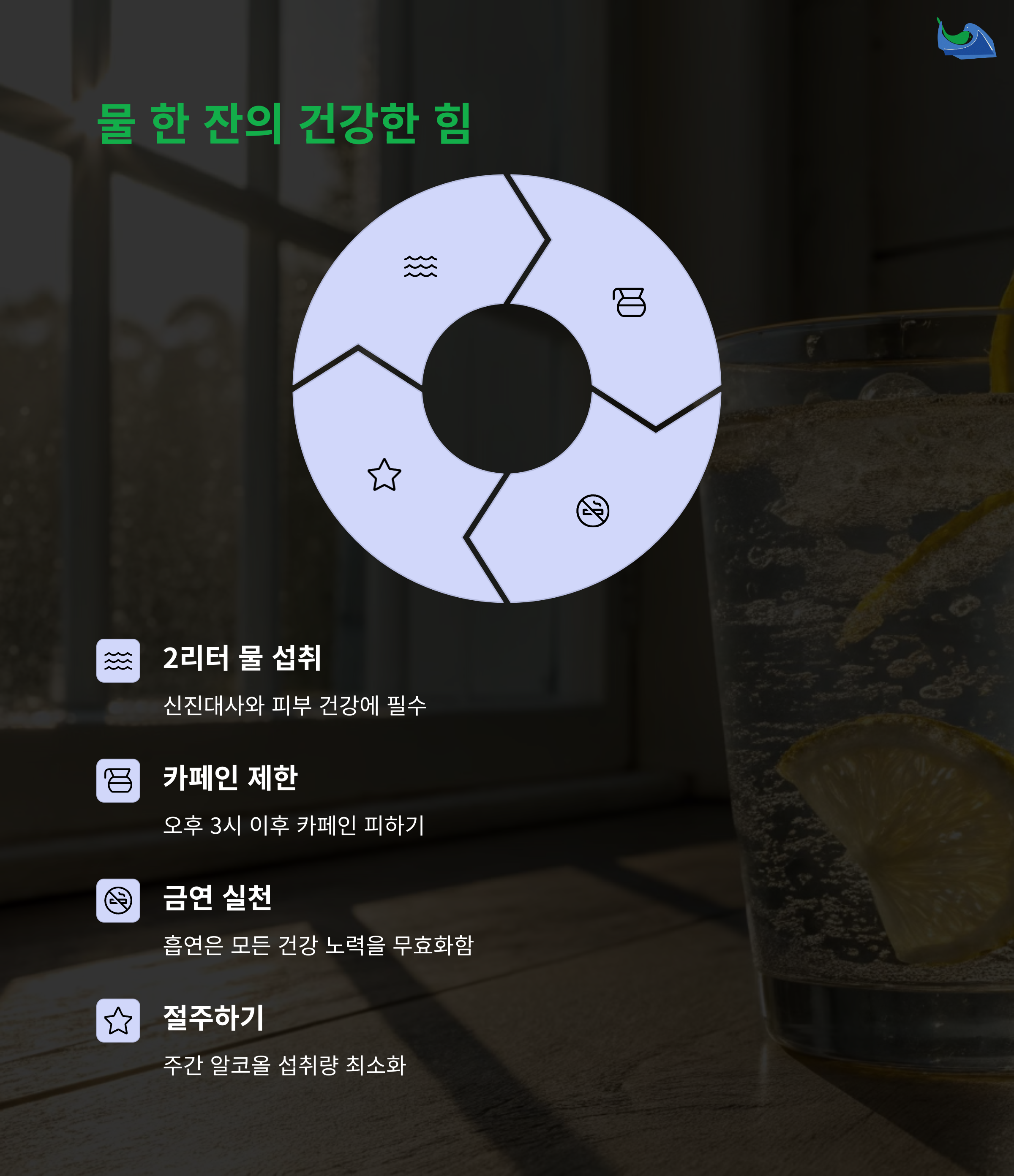 나노플라스틱 없는 깨끗한 물 섭취 습관 형성 일주일 5회 이상 꾸준한 실천이 중요합니다. 금연과 절주, 생활 점검을 통한 자기관리 필요
