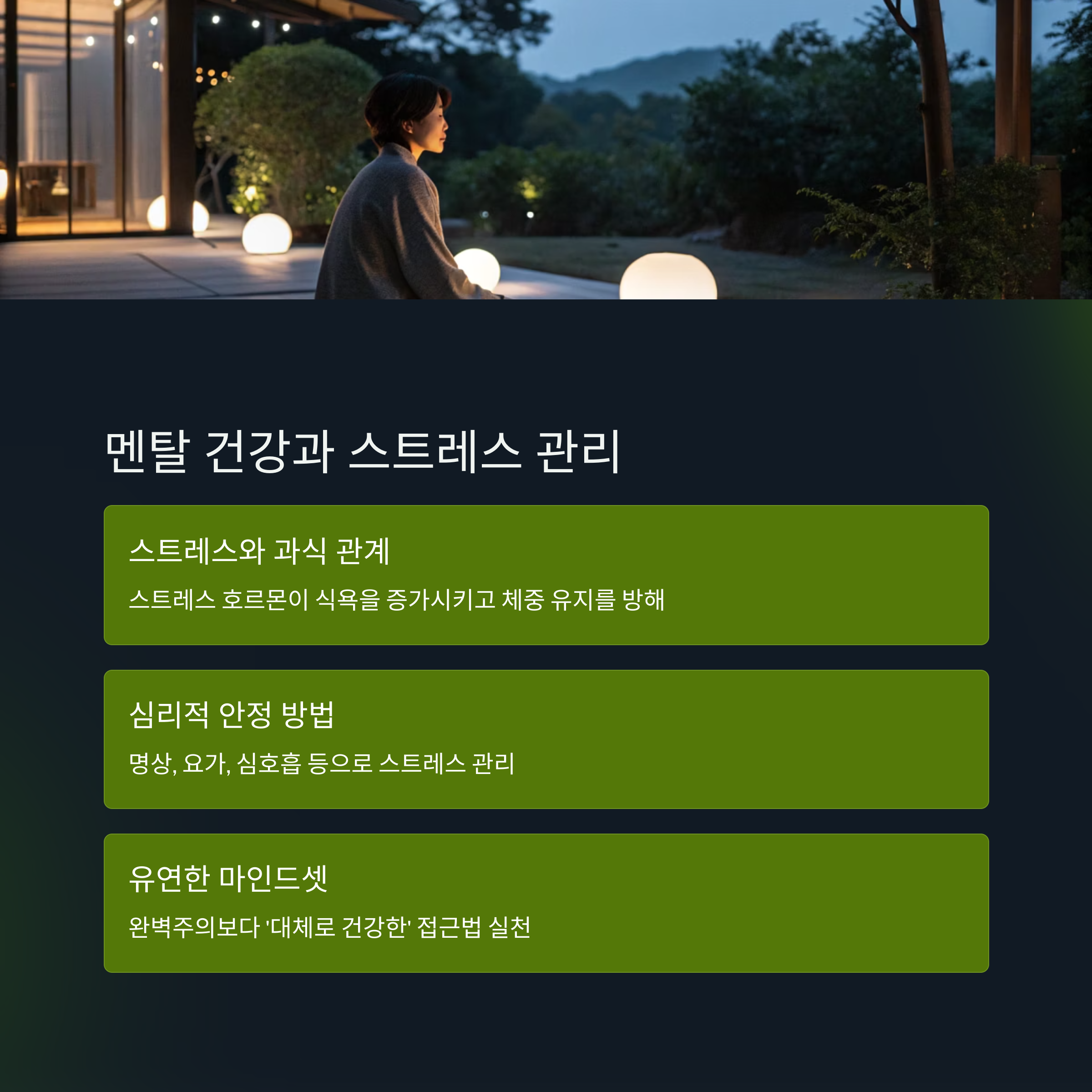 | 식사 리듬 | 지속 가능한 운동 | 심리적 안정 |