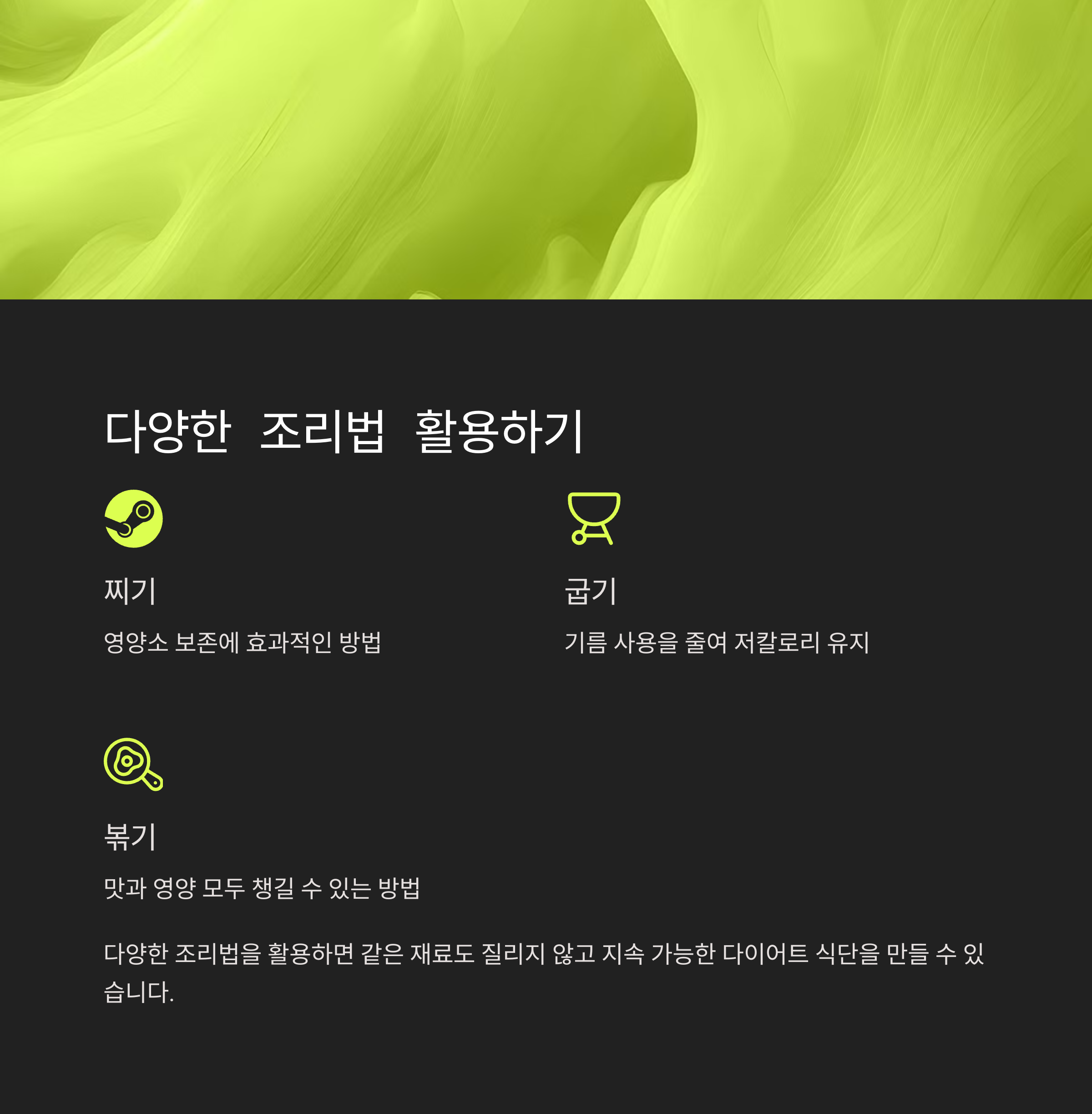 조리법을 다양하게 활용하는 것도 중요한 포인트입니다. 같은 재료라도 찌거나 굽고 볶는 방식에 따라 맛과 식감이 달라져 질리지 않게 즐길 수 있습니다. 예를 들어 닭가슴살은 에어프라이어에 구우면 담백한 맛을 살릴 수 있고, 두부는 프라이팬에 살짝 구워 고소한 풍미를 더할 수 있습니다. 채소는 데치거나 볶으면 향이 살아나며, 다양한 드레싱을 곁들여 변화도 줄 수 있습니다. 특히 곤약밥이나 곤약 파스타 같은 대체 탄수화물은 칼로리를 낮추면서 배를 든든하게 해주는 효과가 있어 유용하게 활용됩니다.