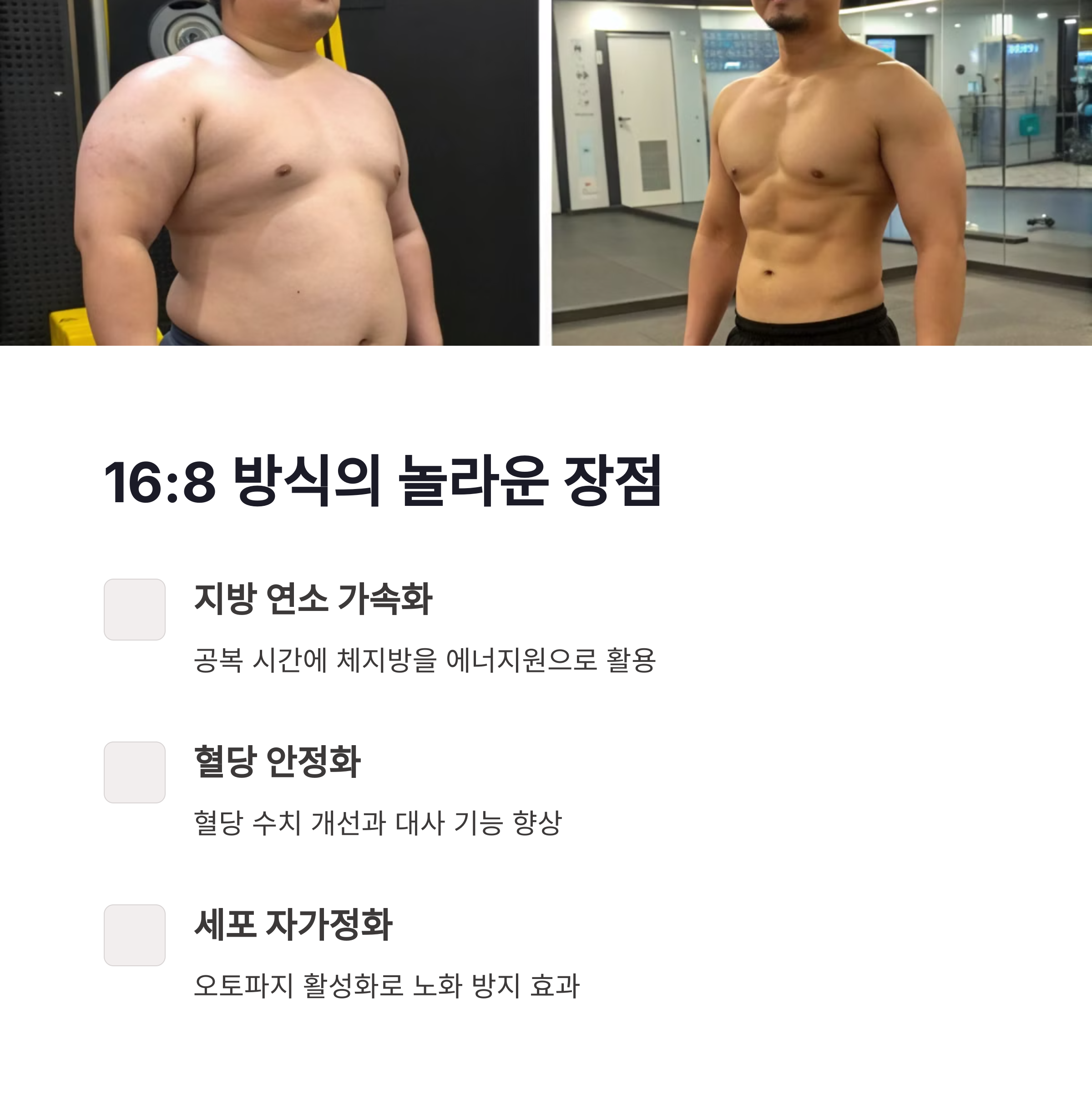 그때 지인의 권유로 16:8 간헐적 단식을 시작하게 되었고,