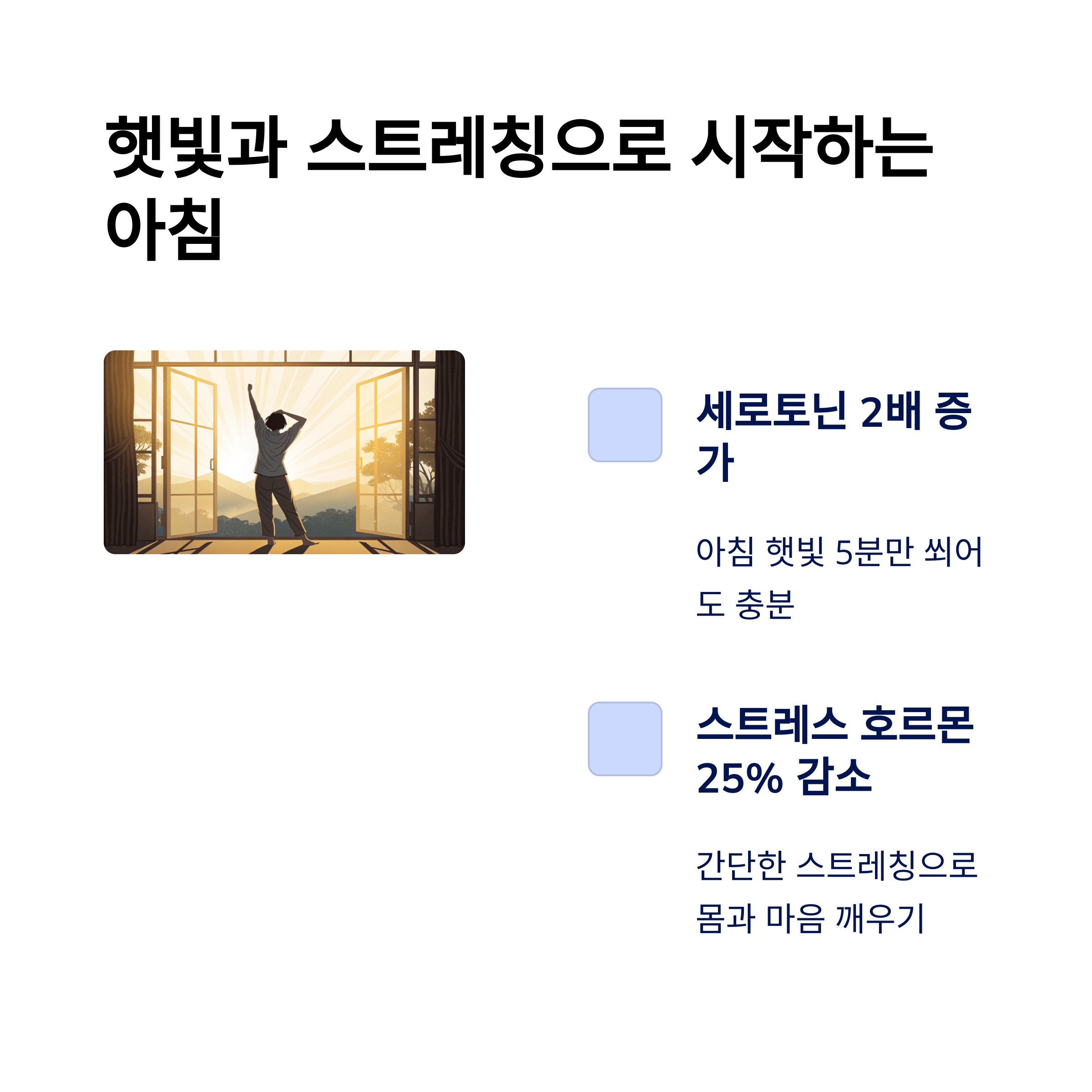 신체와 뇌가 '하루의 시작'을 인식하게 되어 에너지 전환에 도움이 됩니다.