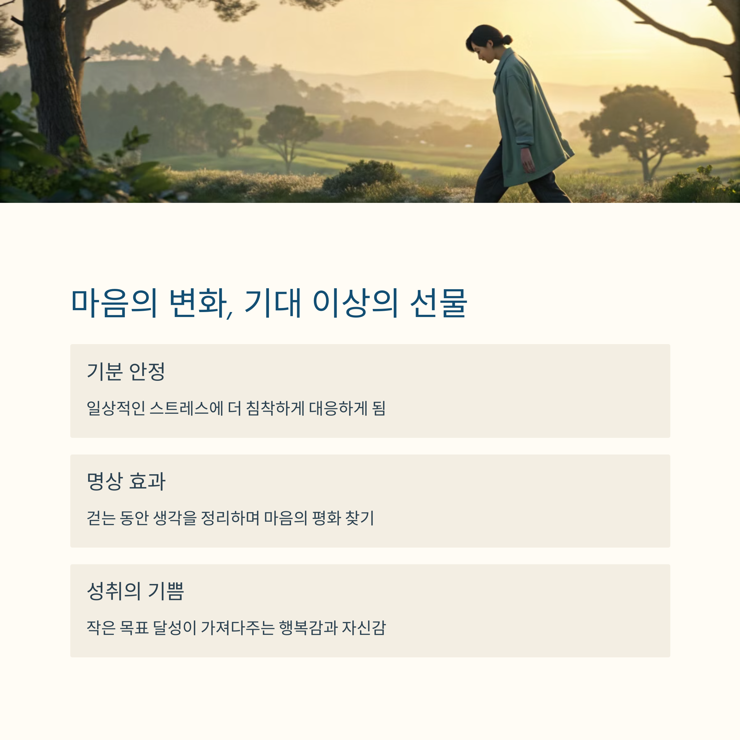 걷기 운동은 누구나 쉽게 시작할 수 있지만 그만큼 꾸준히 실천하기가 쉽지 않은 운동입니다. 하지만 짧은 시간이라도 매일 실천해본 결과, 몸과 마음이 확실히 달라졌다는 점은 분명합니다. 모든 운동의 기본은 ‘지속성’입니다. 여러분도 오늘부터 하루 10분, 15분씩이라도 걸어보는 건 어떨까요? 작은 습관이 큰 변화를 만듭니다.