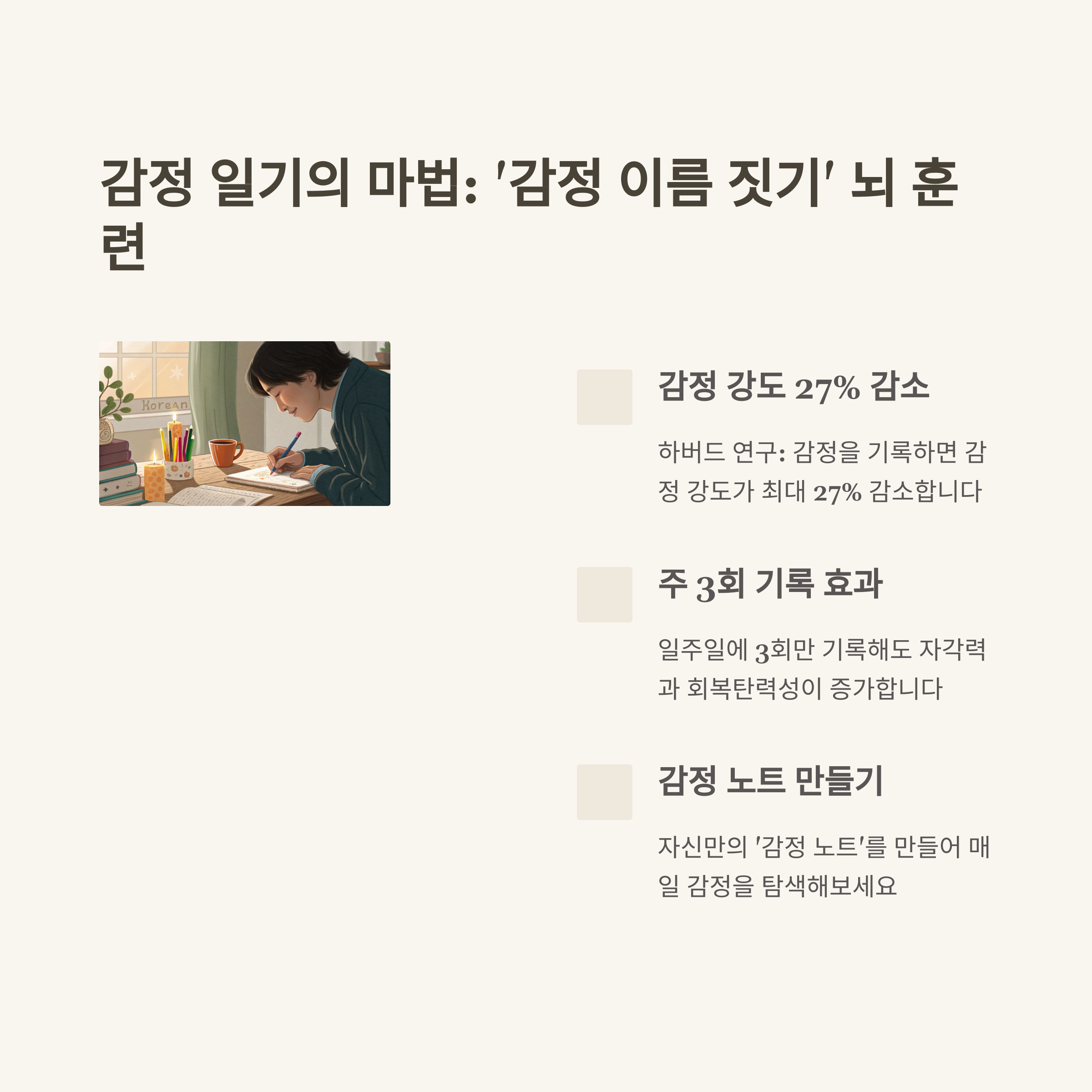 매일 자신의 감정을 글로 기록하는 습관은 감정 인식 능력을 높여줍니다.