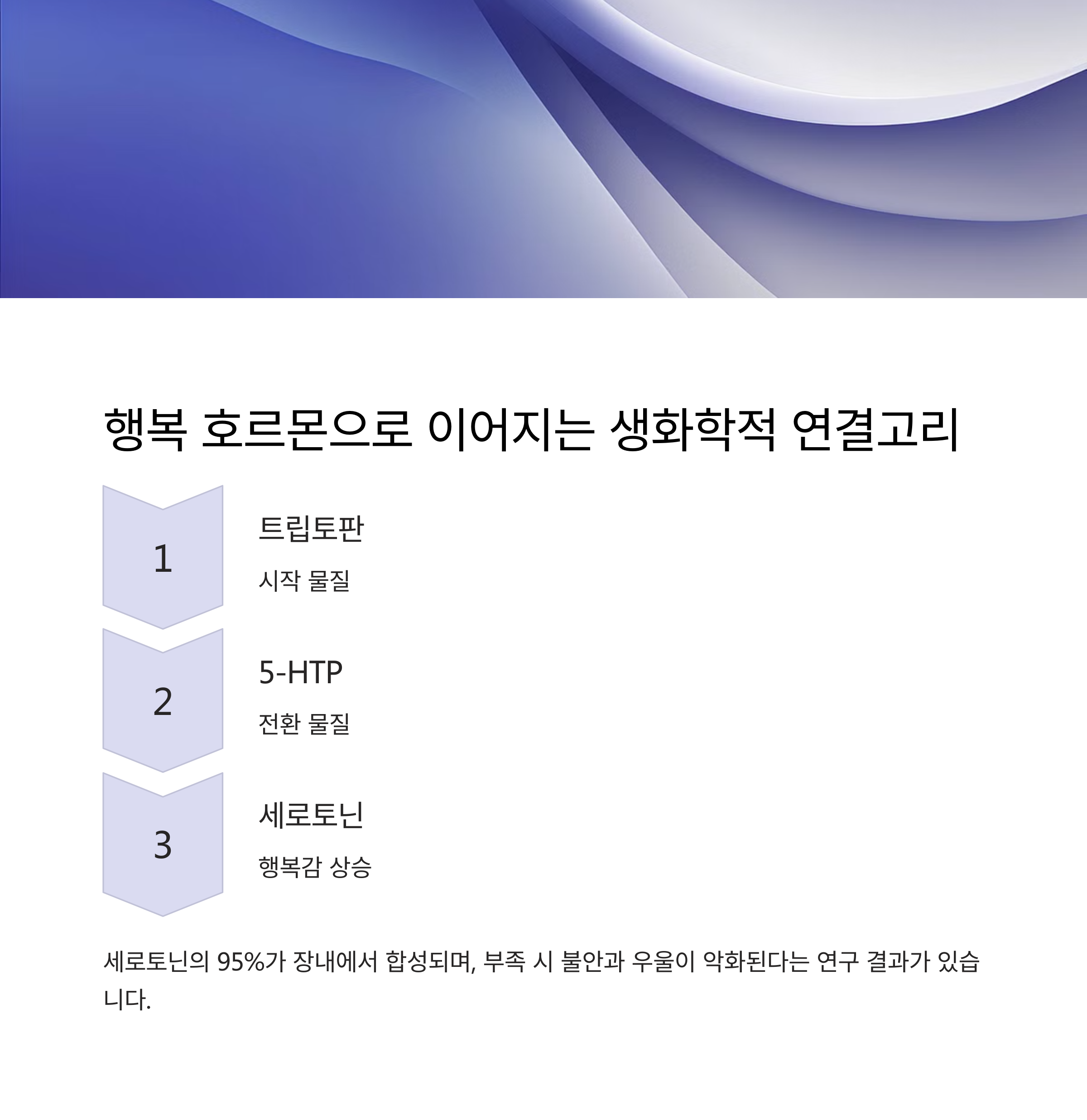 "5-HTP"라는 중간 대사물질을 거쳐 결국 세로토닌으로 전환됩니다.