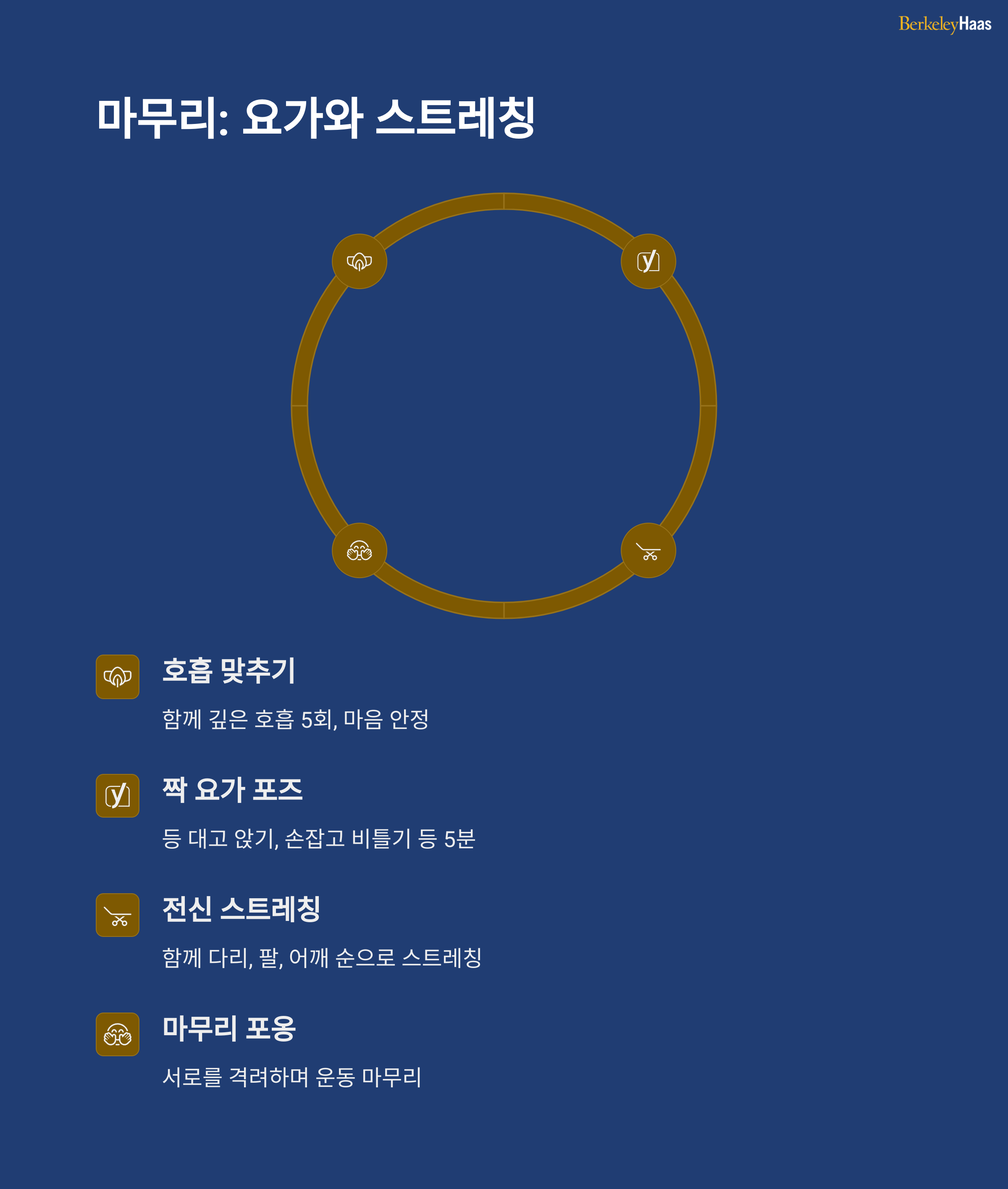 "파트너 스트레칭은 신뢰를 쌓고, 몸의 긴장을 풀어주는 중요한 시간입니다."