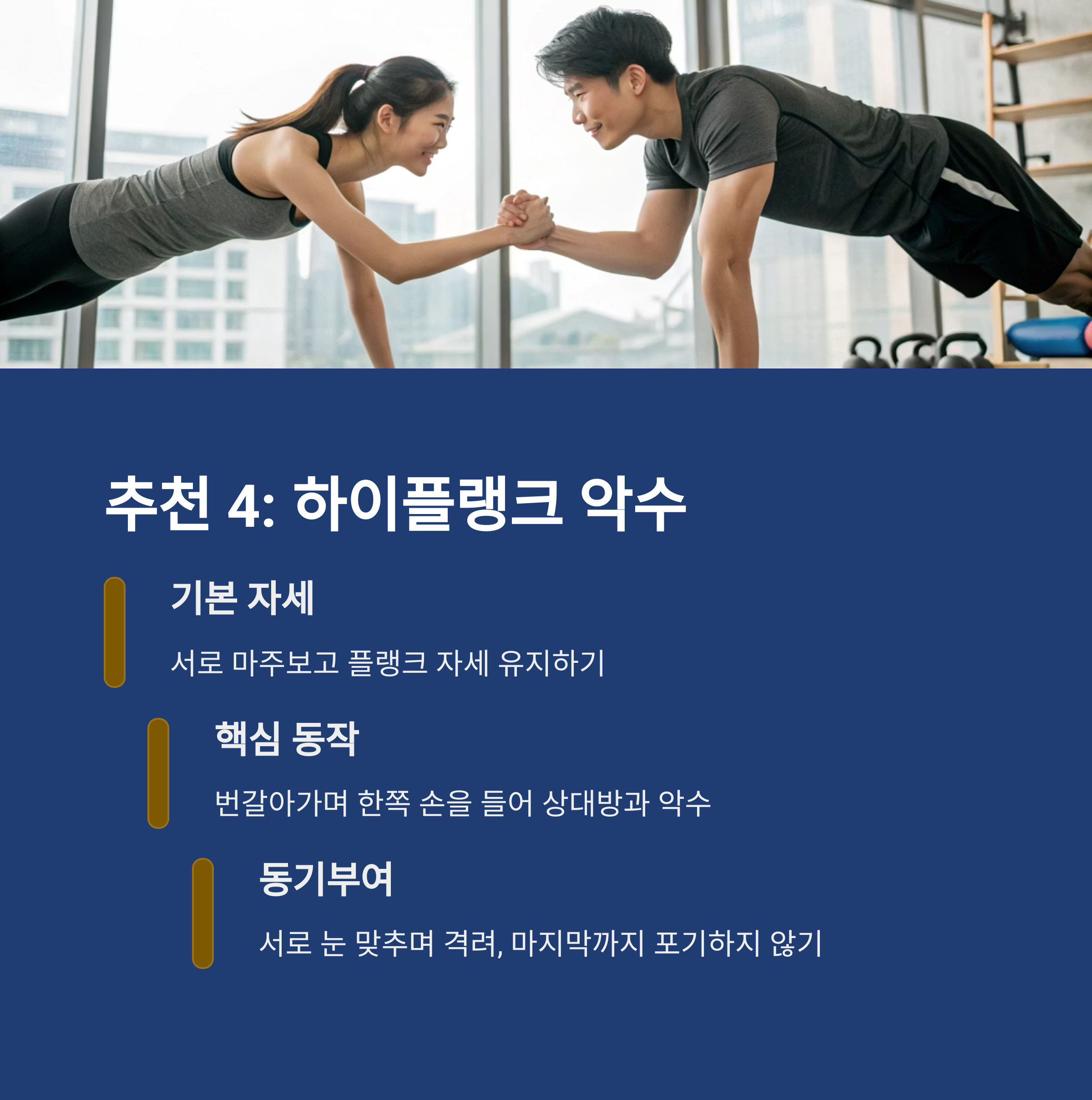 커플 운동 추천 4 - 하이플랭크 악수로 코어와 팔근육 강화