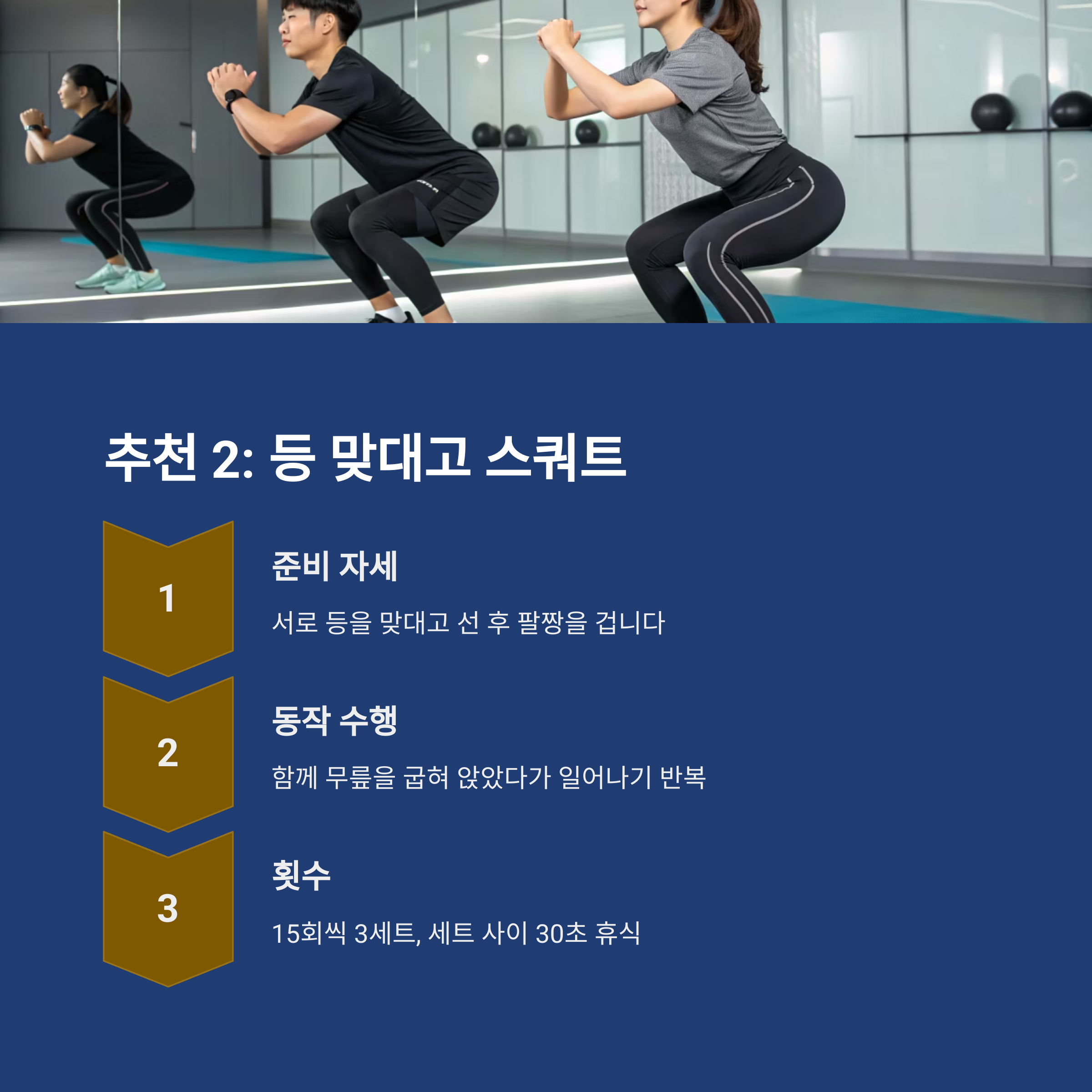"균형과 신뢰가 동시에 필요한 커플 스쿼트, 정말 강력 추천합니다."