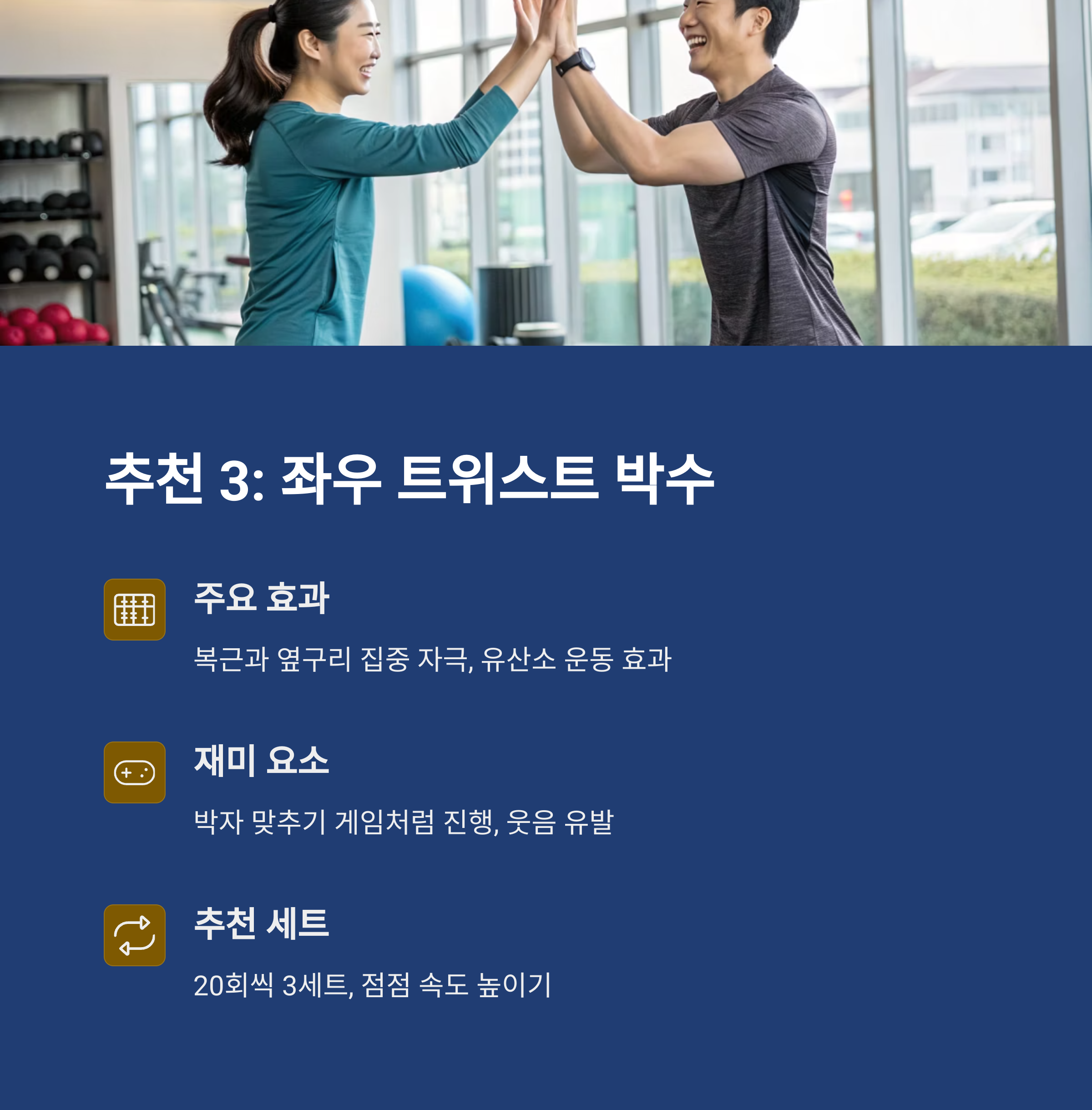 커플 운동 추천 3 - 좌우 트위스트 박수로 코어 자극