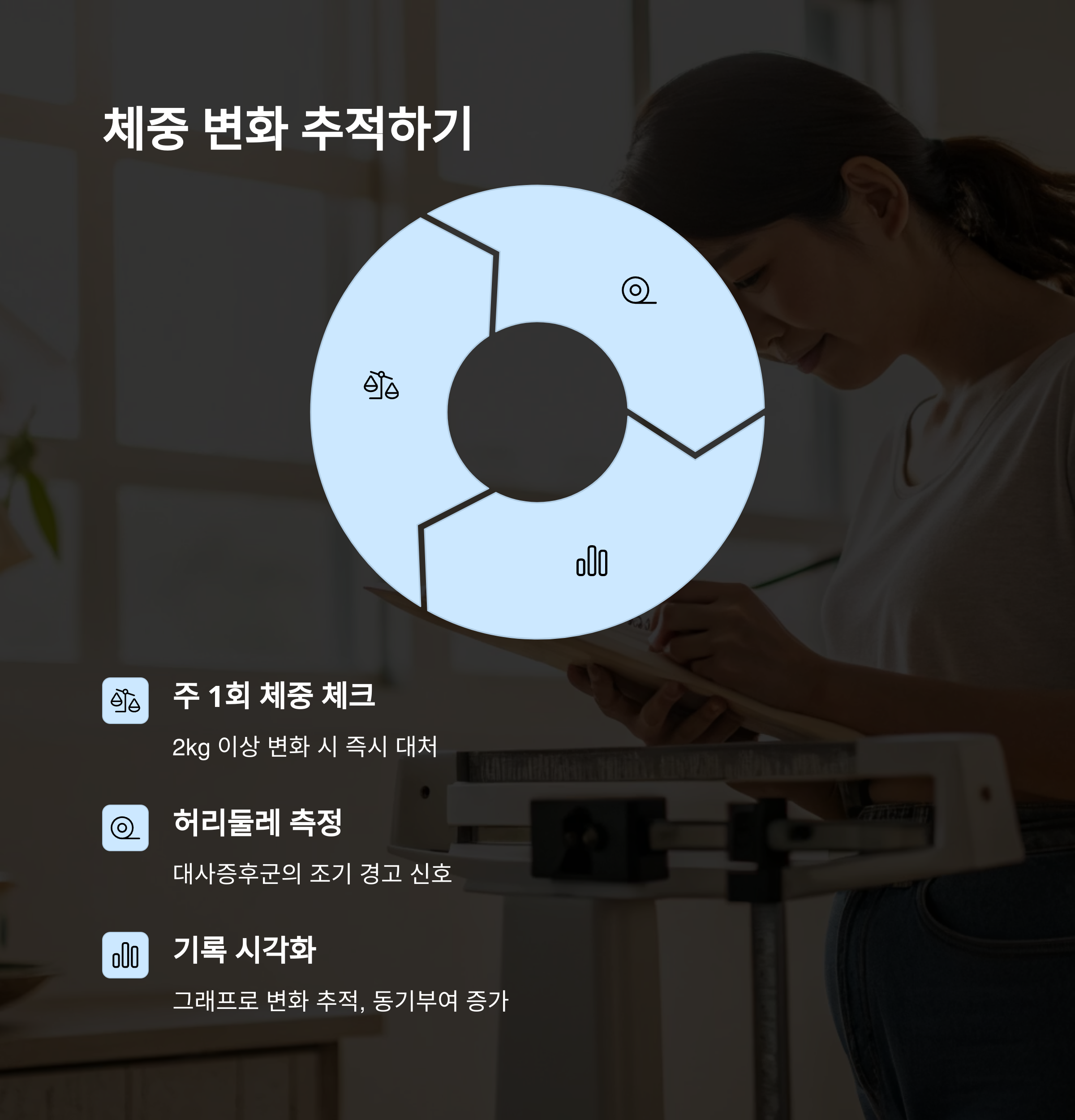 정기적으로 체중과 허리둘레를 측정하는 것은 유지 전략의 핵심입니다.