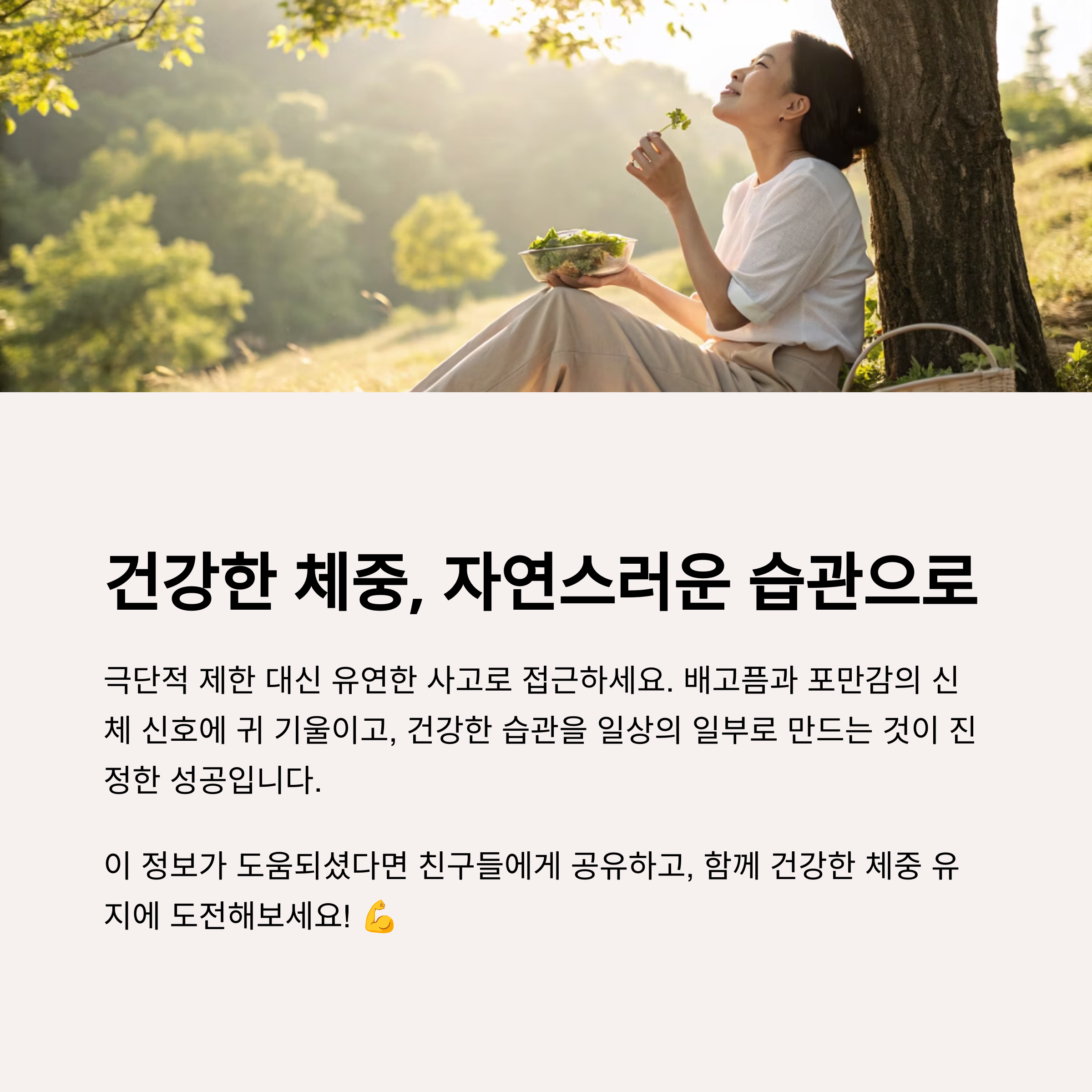 감량 후에는 음식에 대한 강박을 버리고, 자연스럽게 건강 습관을 유지하는 것이 목표입니다.