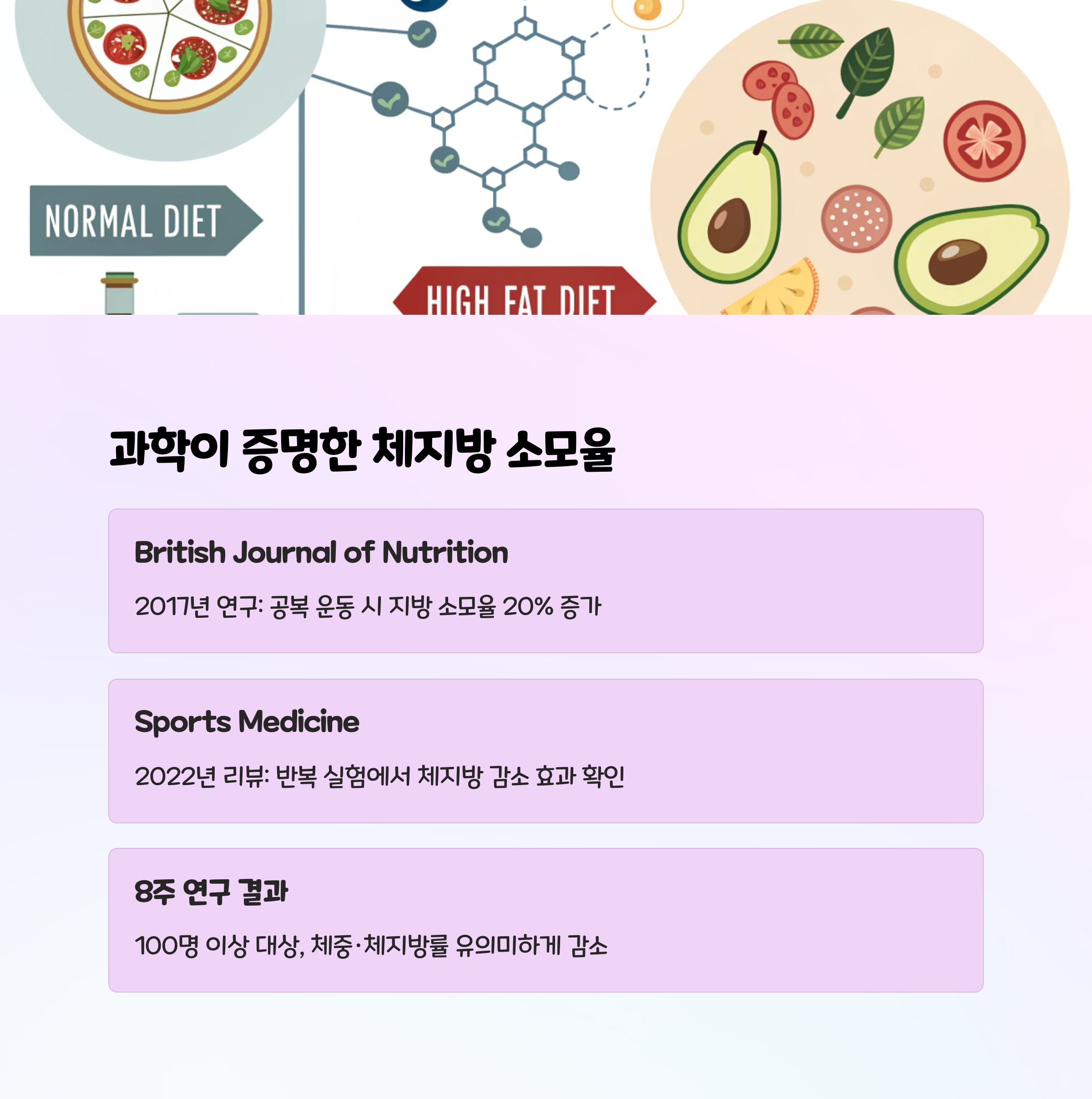 공복 유산소 운동은 이 호르몬들의 작용을 극대화하여 체지방 감량을 가속화합니다.