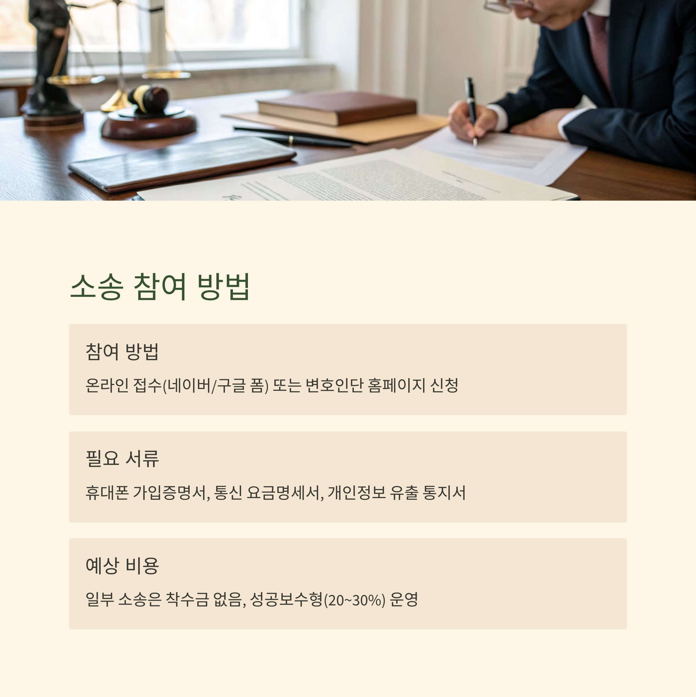 핵심: "집단 소송 참여와 별도로 개인 피해보상도 함께 준비하면 유리합니다."