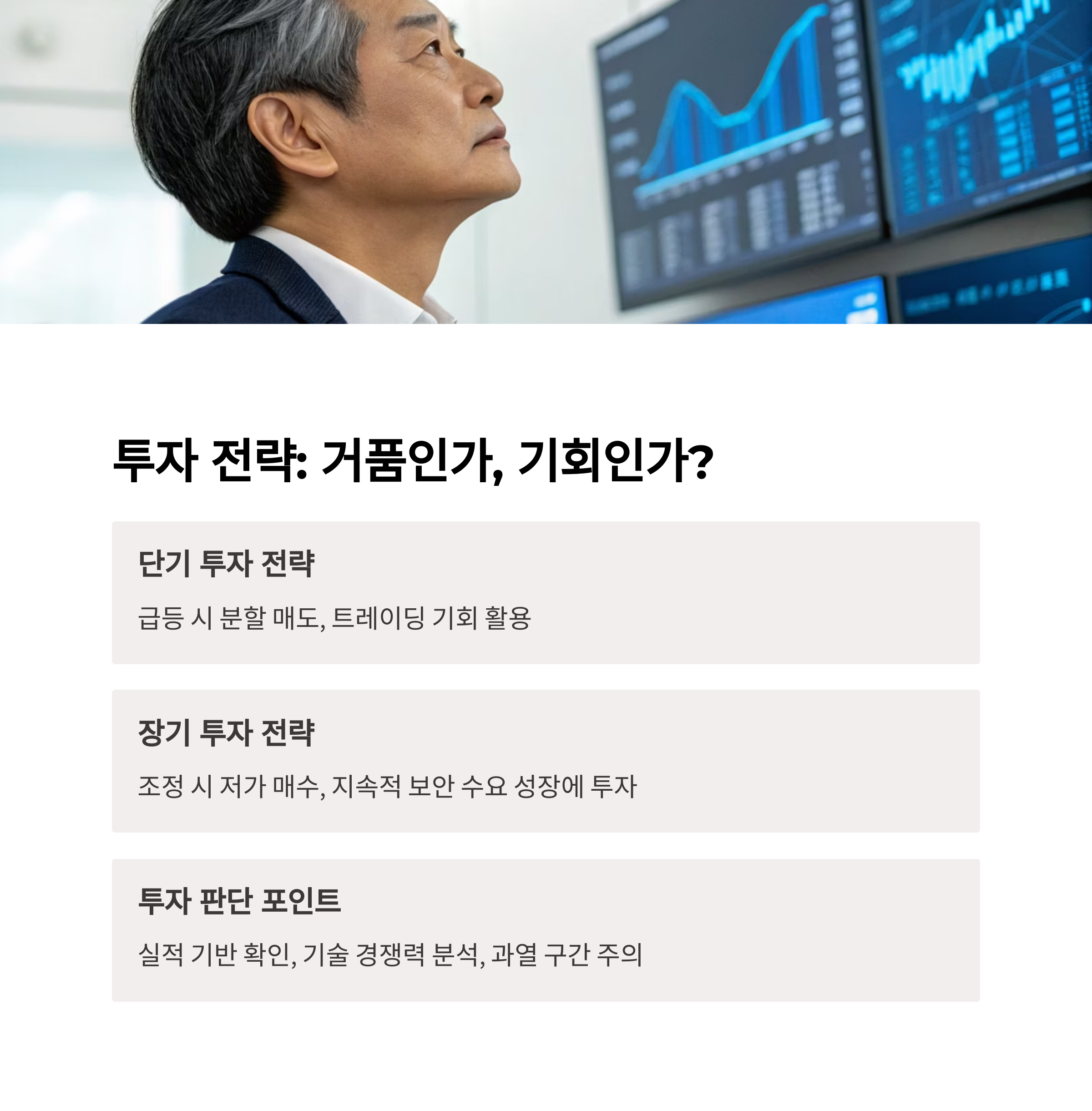 | 전략 | 급등 시 분할 매도 | 조정 시 저가 매수 |