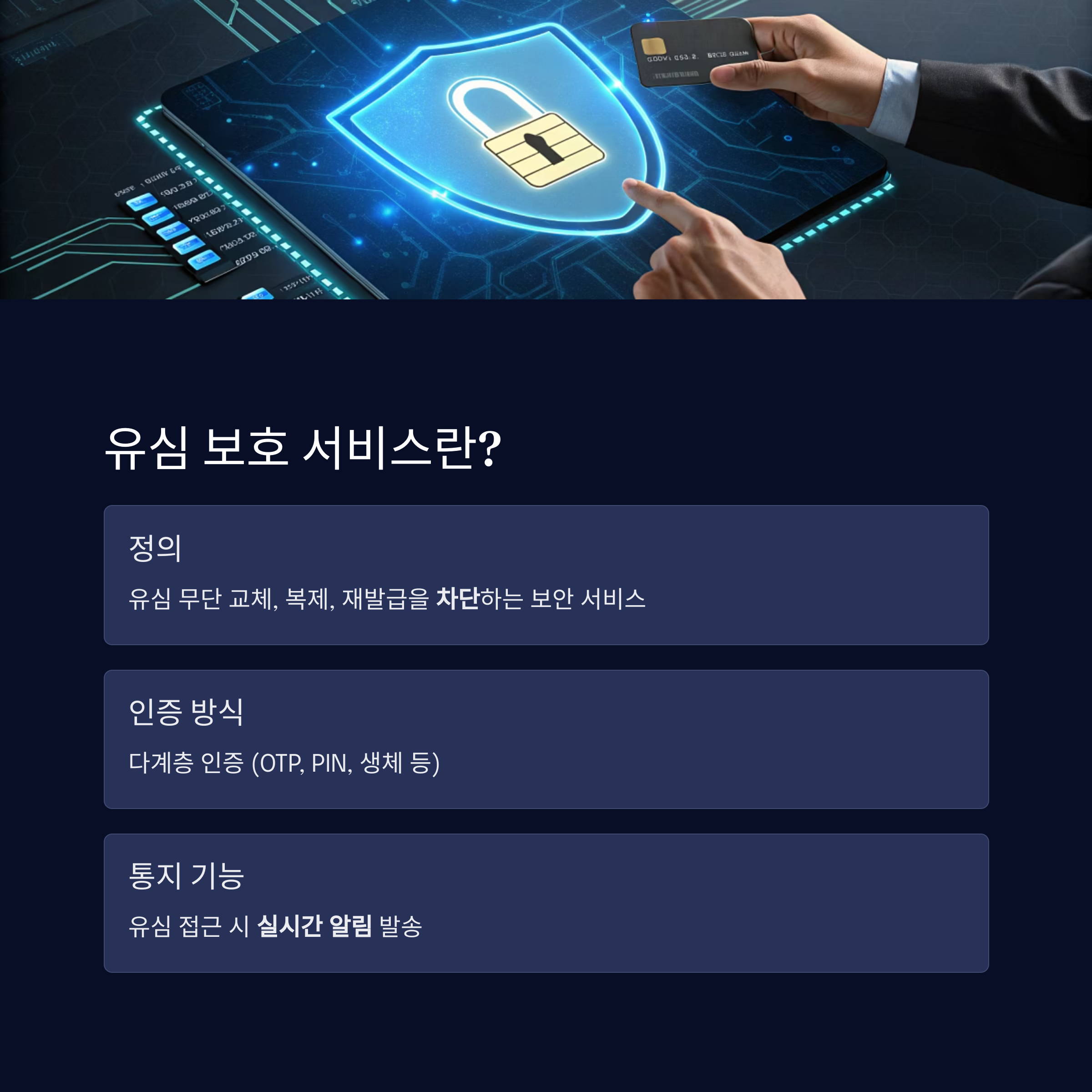 | 정의 | 유심 무단 교체, 복제, 재발급을 차단하는 보안 서비스 |