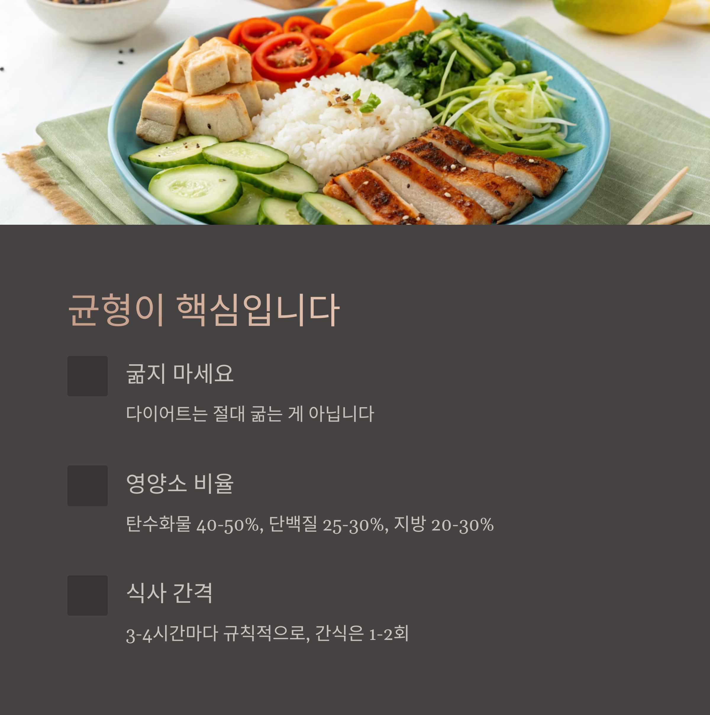"다이어트 식단은 절대 굶는 게 아닙니다" – 핵심은 ‘균형’입니다