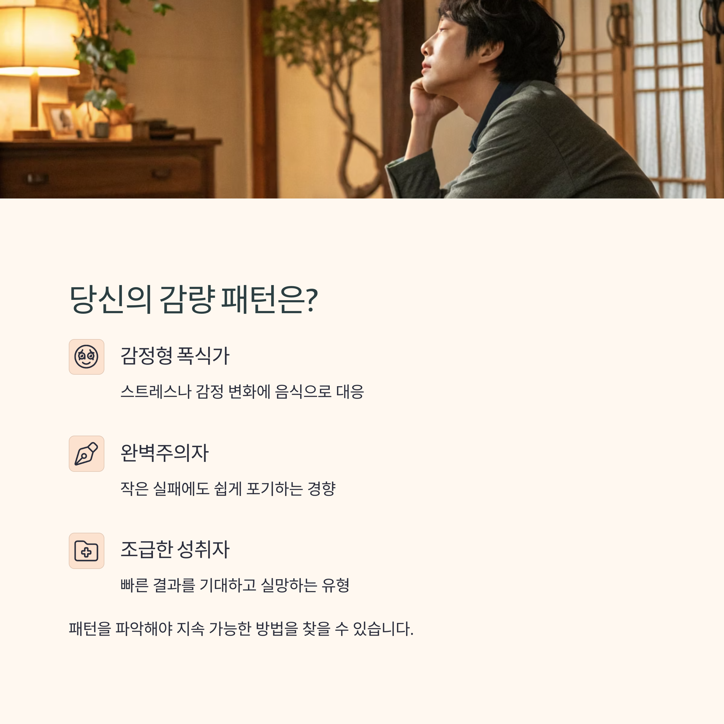 감정형 폭식가인가요? 완벽주의로 인해 금방 포기하는 타입인가요?