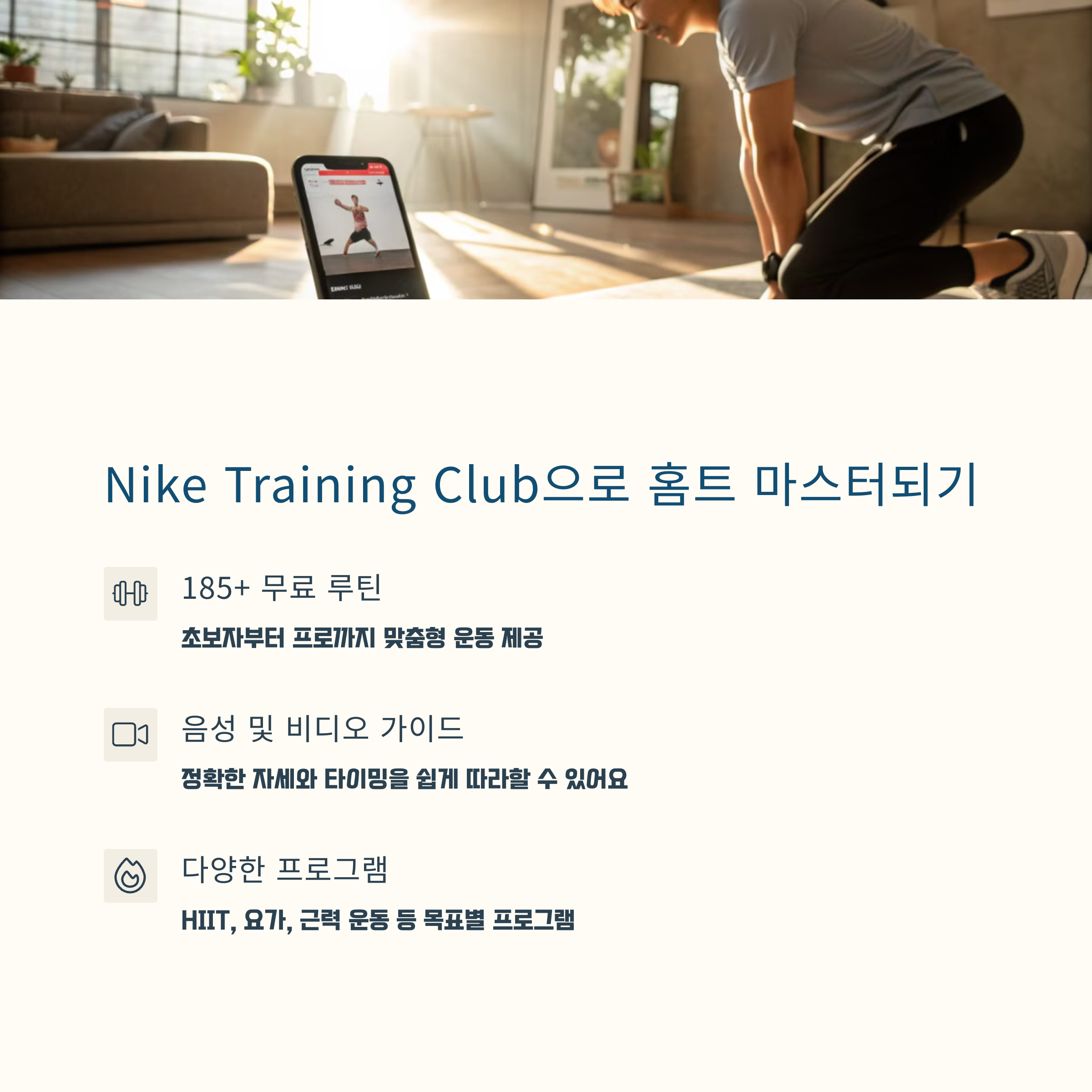 Nike에서 직접 제공하는 트레이닝 앱으로, 다양한 루틴이 무료로 제공된다는 점이 큰 장점입니다.