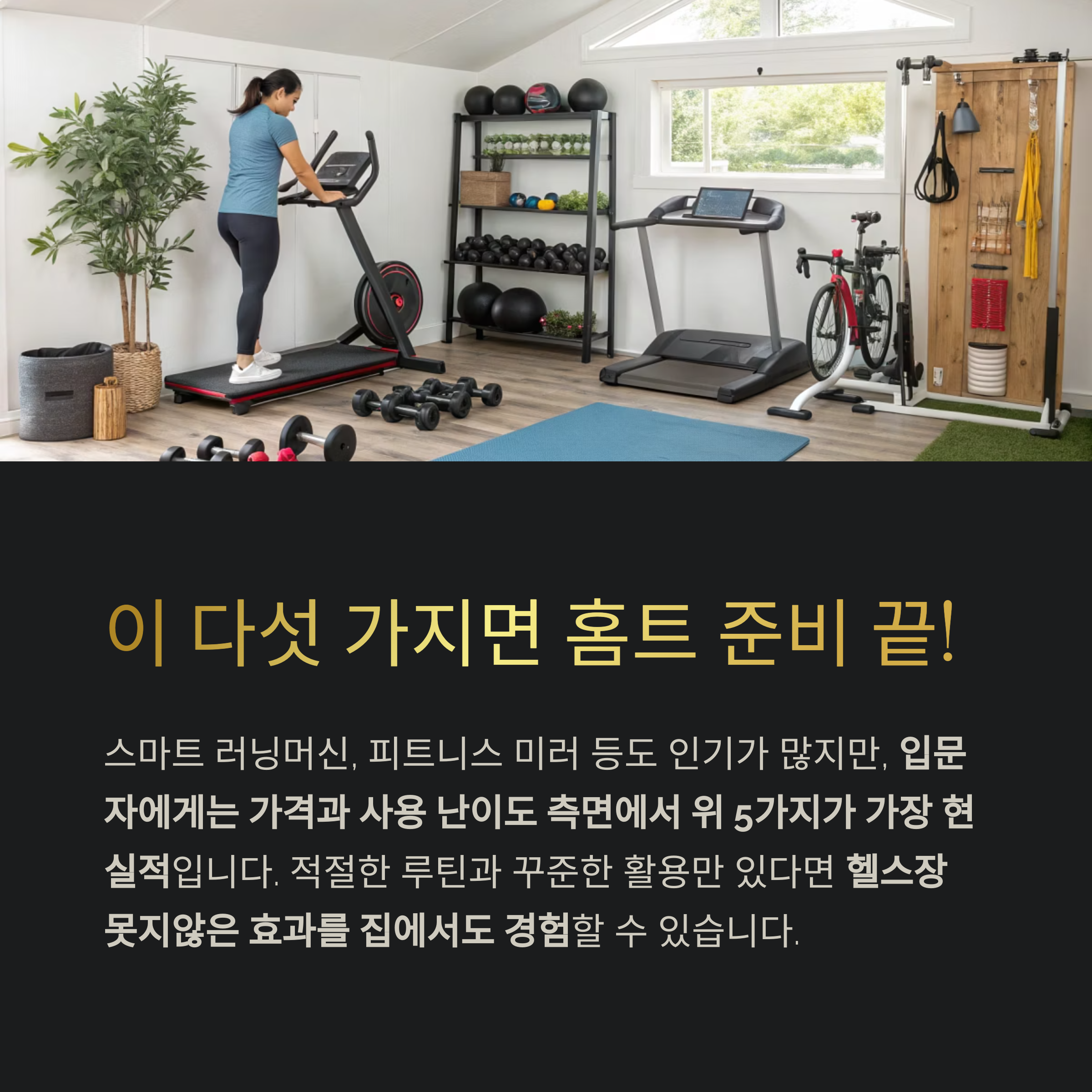 근력, 유산소, 회복까지 아우를 수 있는 5가지 필수 장비를 소개합니다.