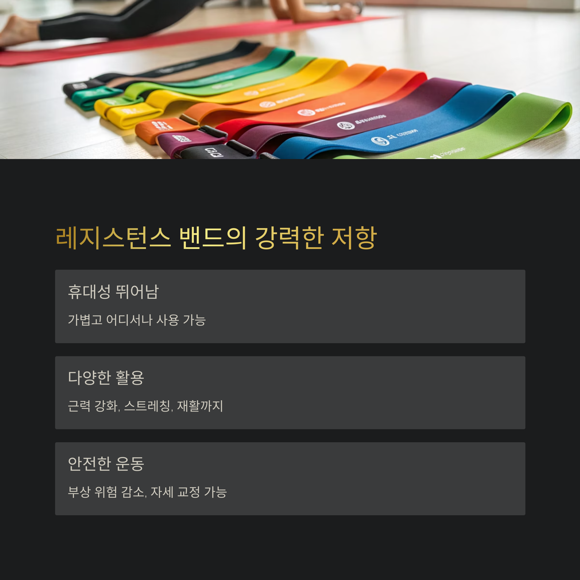 입문자들이 특히 선호하는 장비가 레지스턴스 밴드입니다.