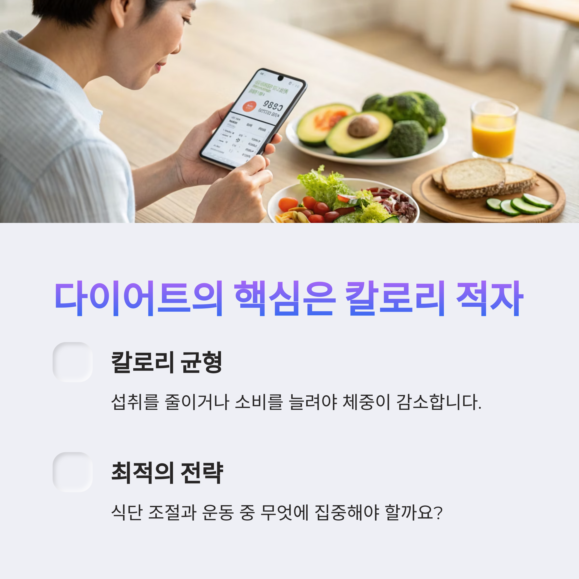 다이어트의 핵심은 "칼로리 적자"를 만드는 것입니다.