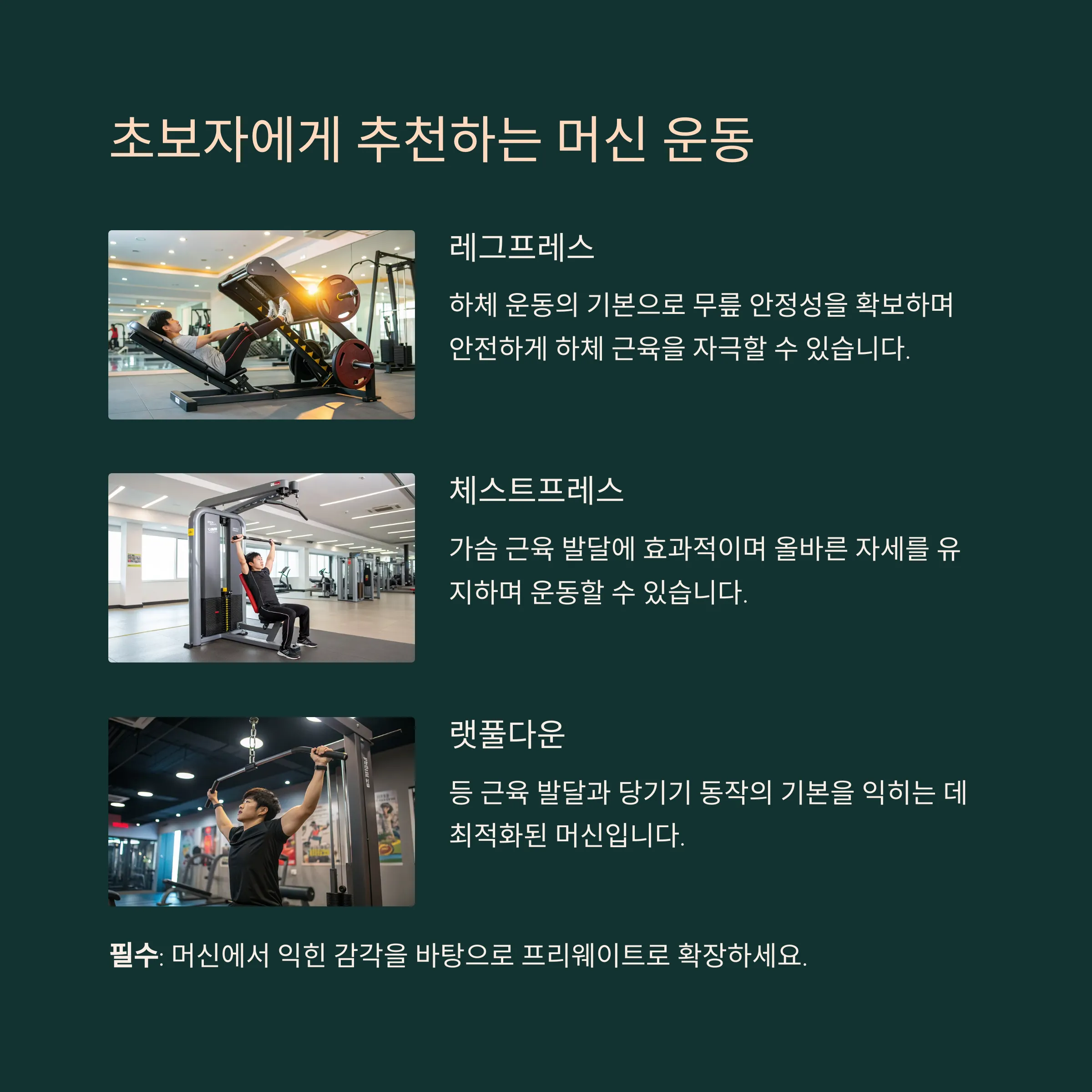초보자에게 머신 운동은 동작 가이드가 명확하고