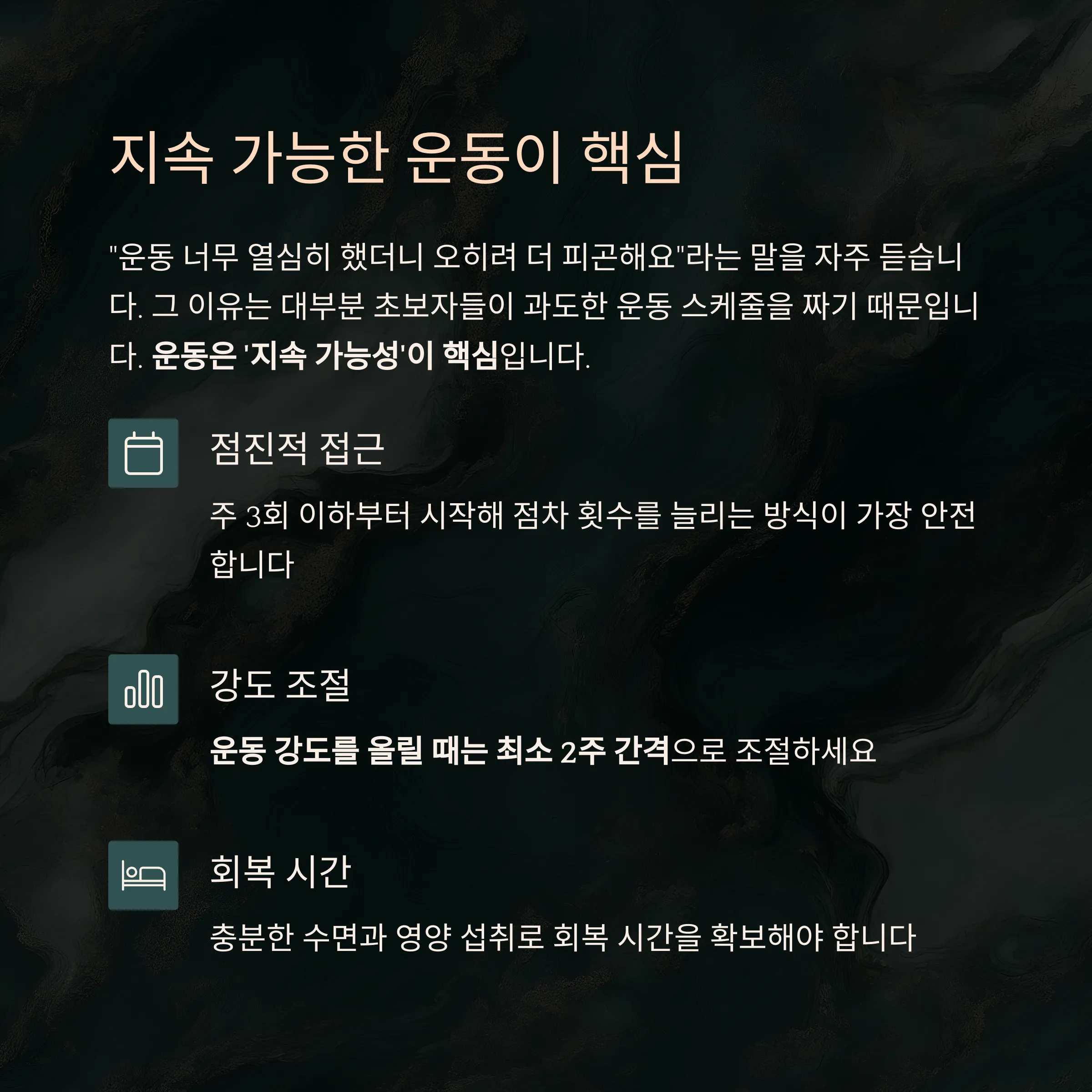 회복 시간(수면, 영양)도 반드시 확보해야 합니다.