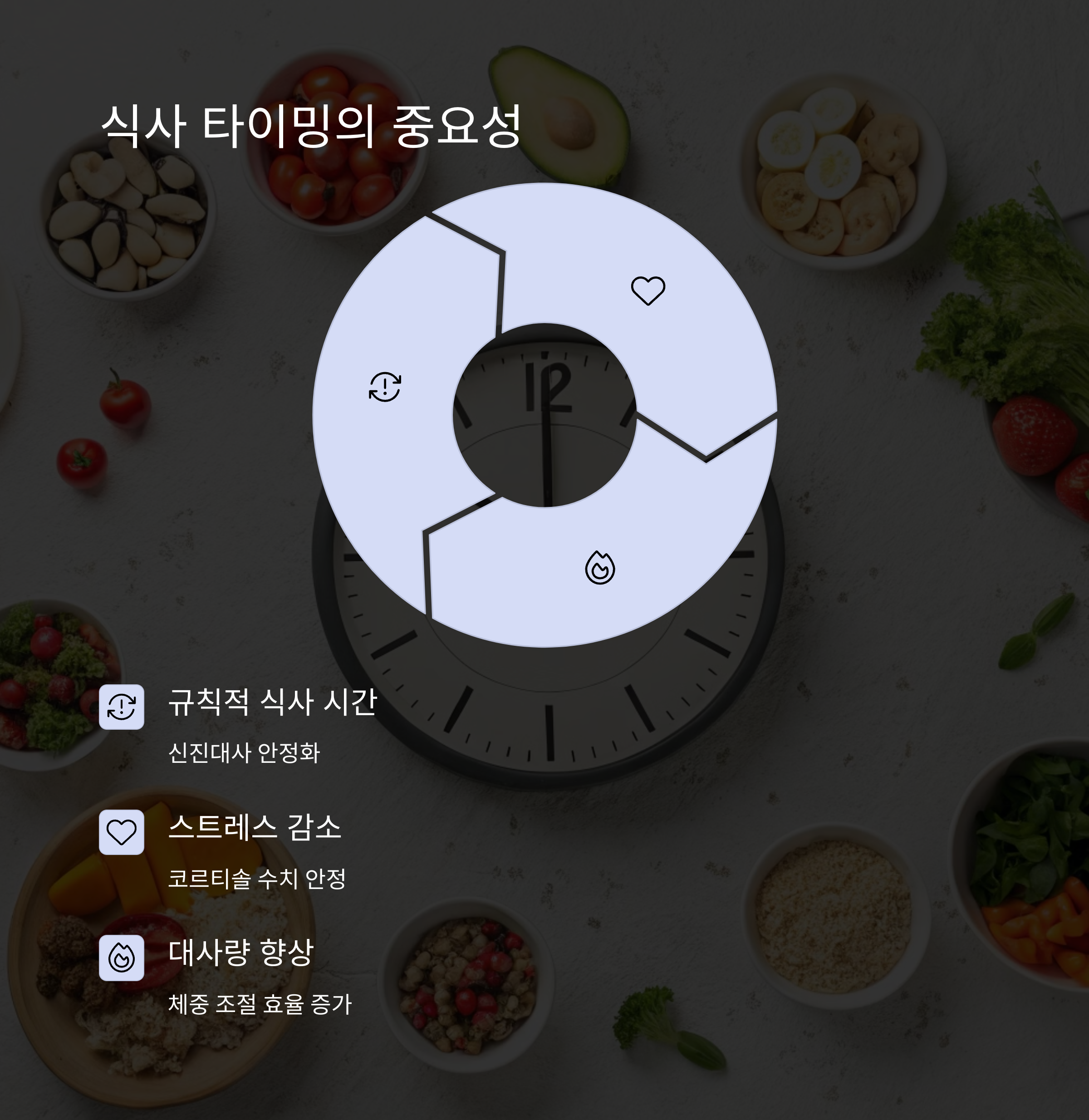 체중 감량에도 하루 세 끼가 효과적일 수 있다. | 일정한 시간에 식사하여 생체리듬 유지. | 포만감 유지하면서도 칼로리 조절 가능. |