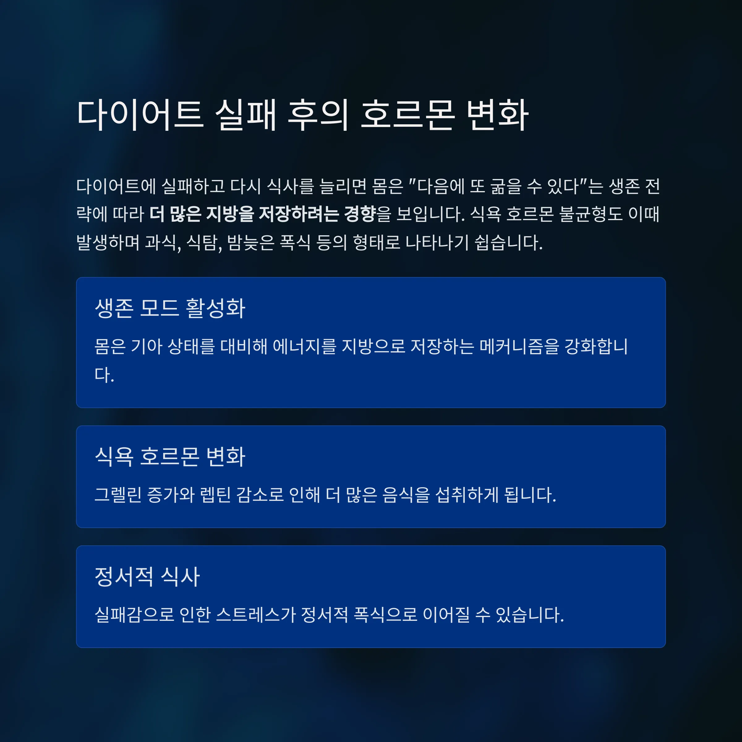 실패 후 찾아오는 식욕 폭발, 호르몬 불균형
