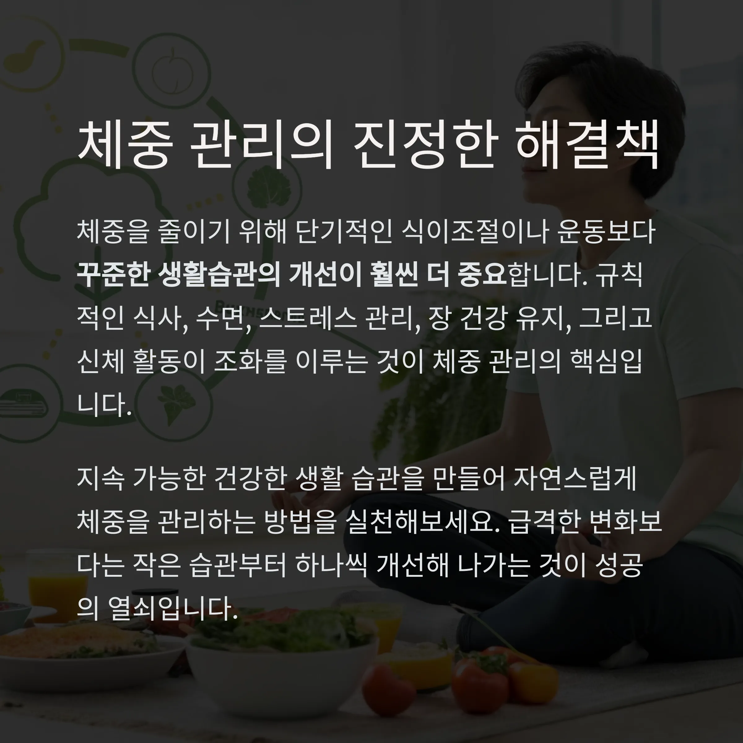 체중을 줄이기 위해 단기적인 식이조절이나 운동보다