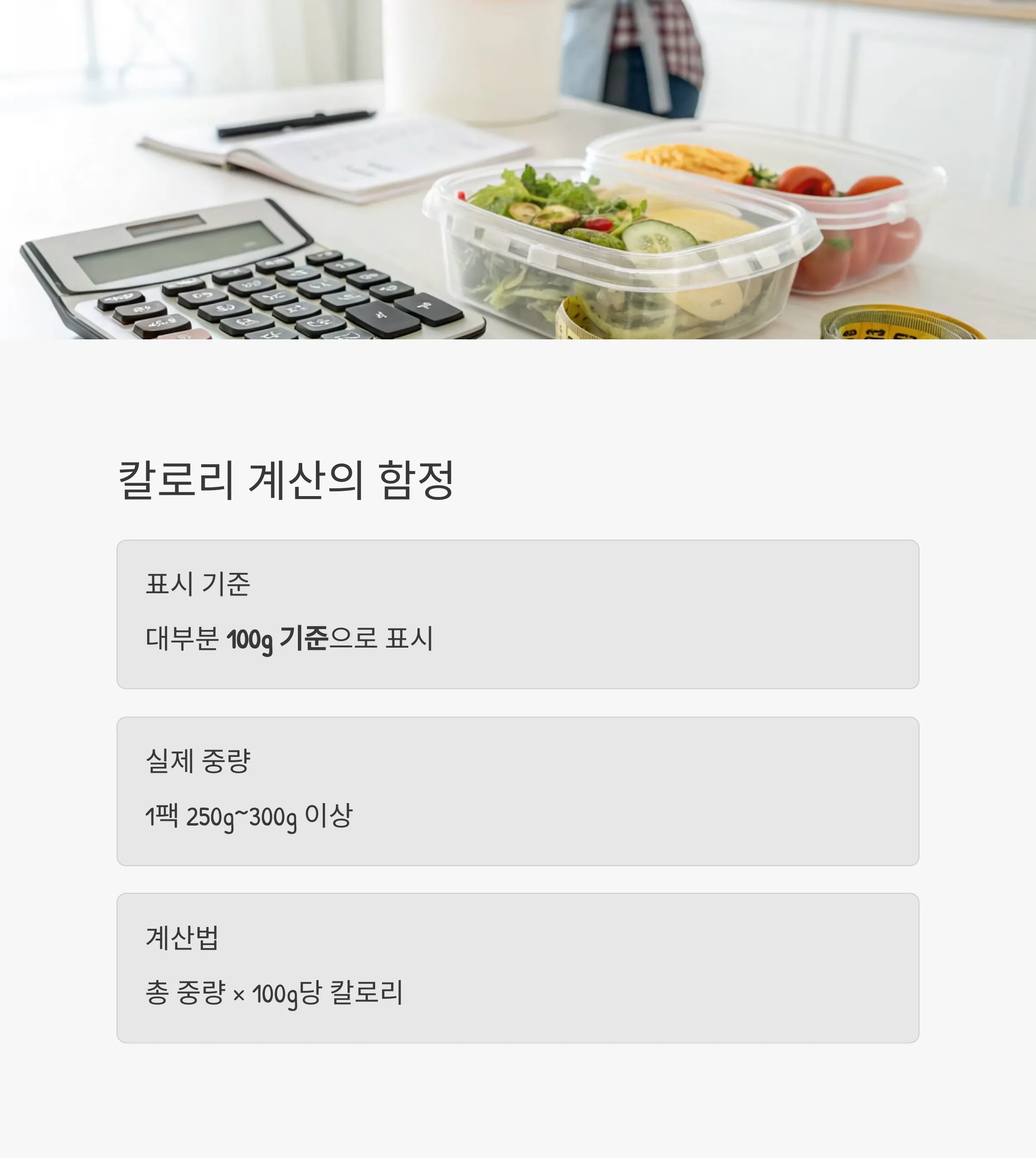 총 내용량과 칼로리 계산법