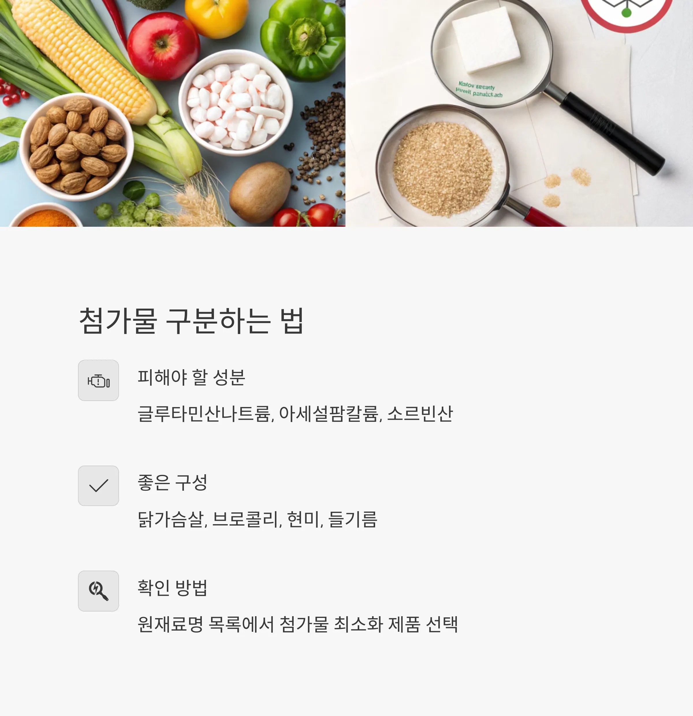 "단백질이 주 재료인지 꼭 확인하세요."