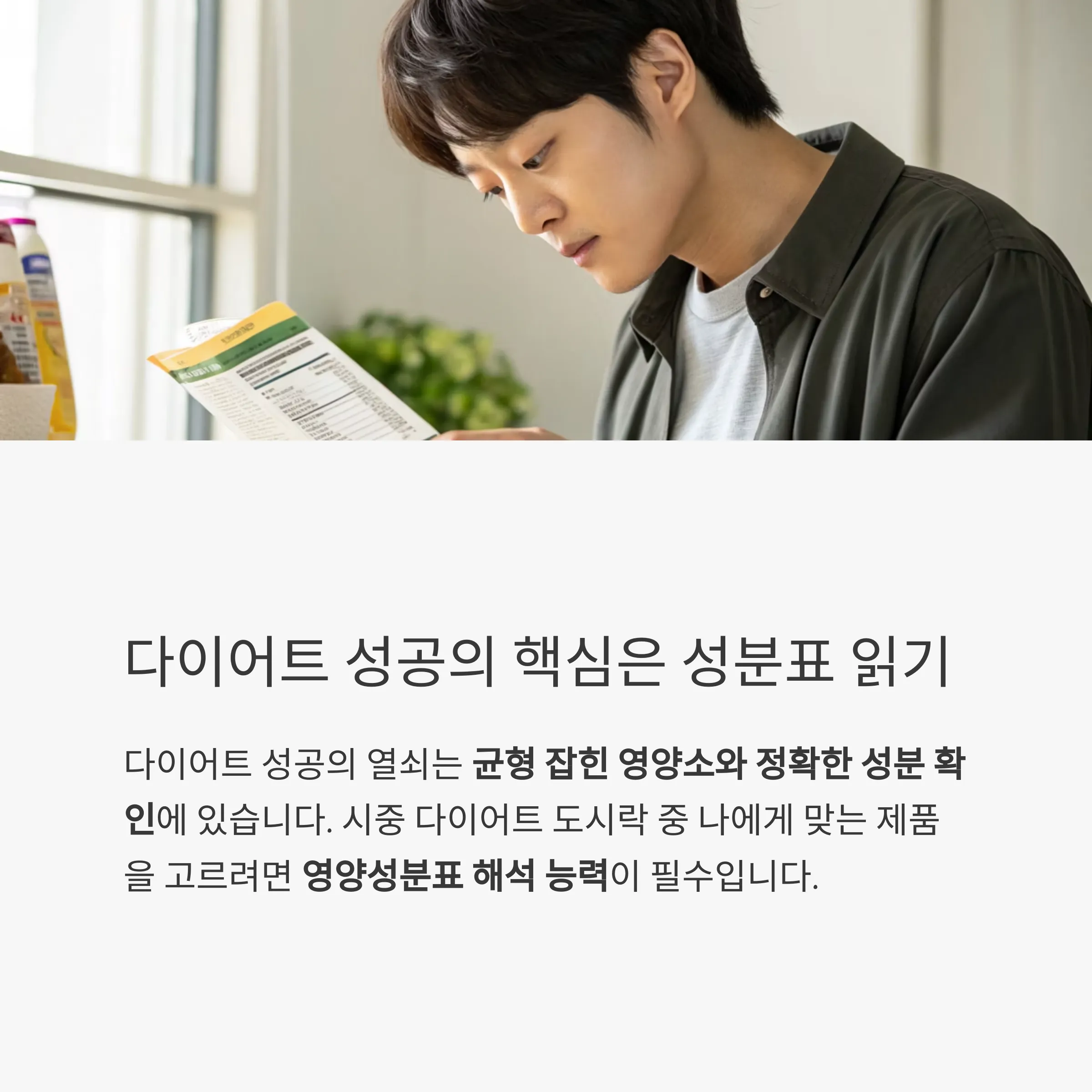 다이어트를 계획할 때, 식단 관리의 핵심은 균형 잡힌 영양소와 정확한 성분 확인입니다.