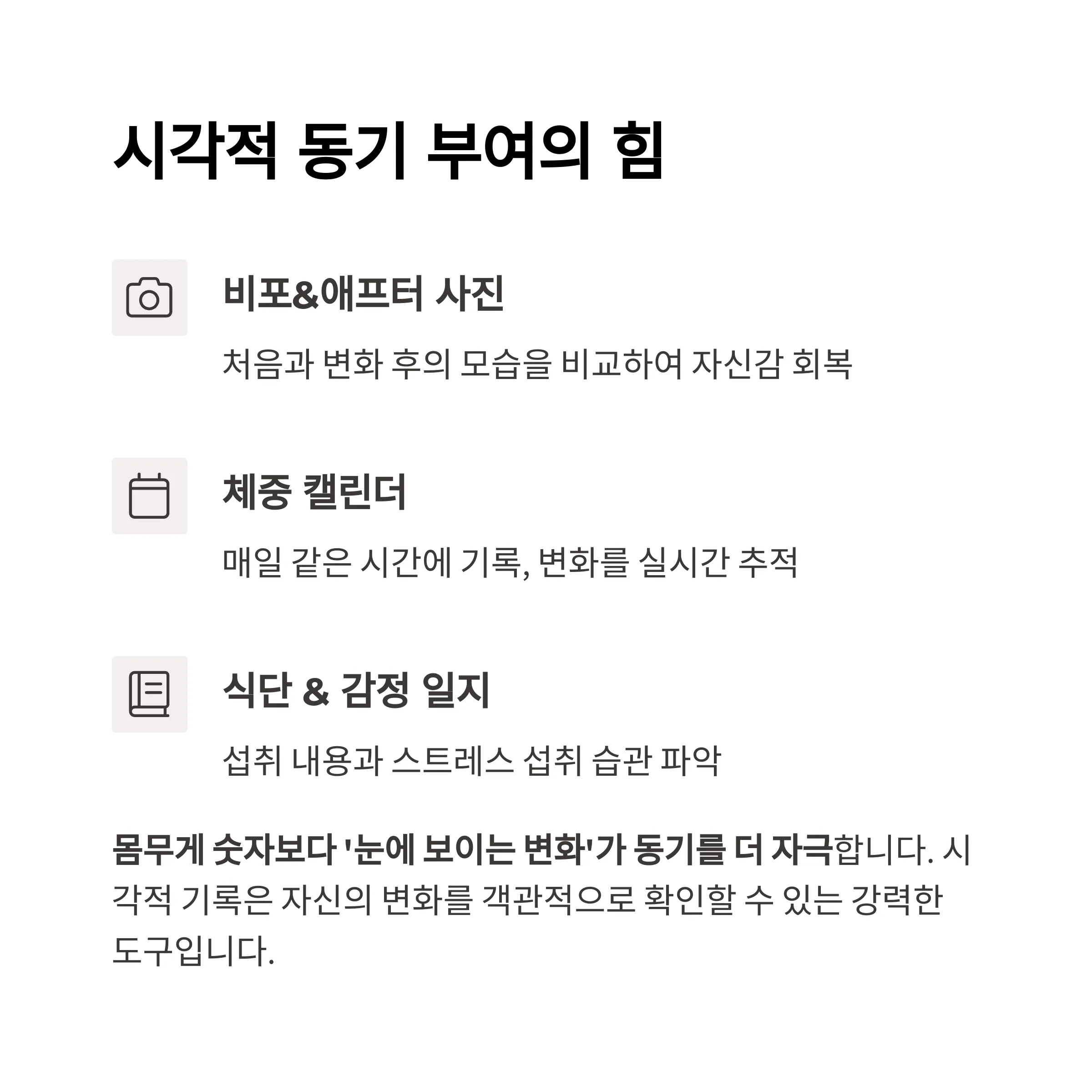 몸무게 숫자보다 '눈에 보이는 변화'가 동기를 더 자극합니다.