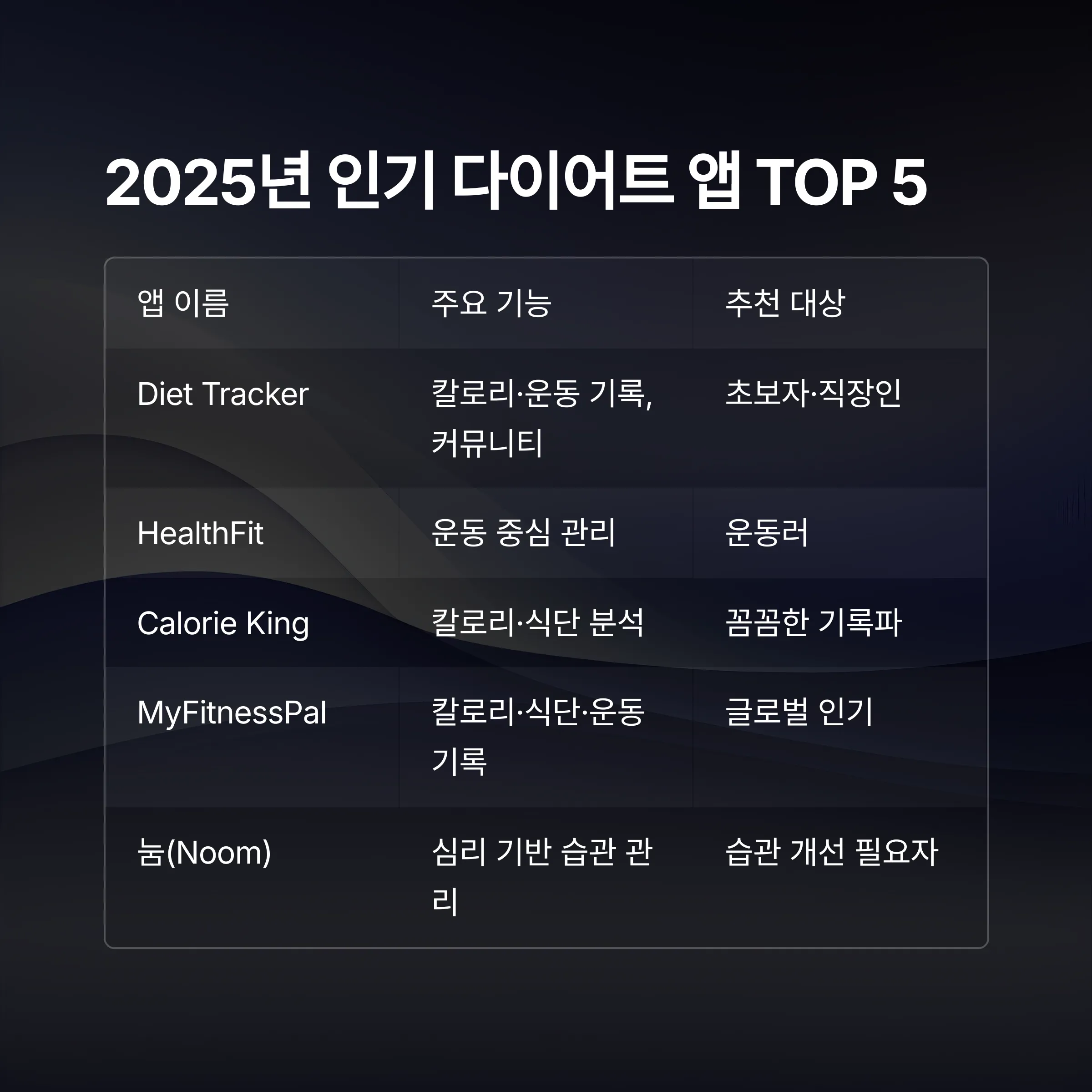 2025년 인기 다이어트 앱 TOP 5 비교
