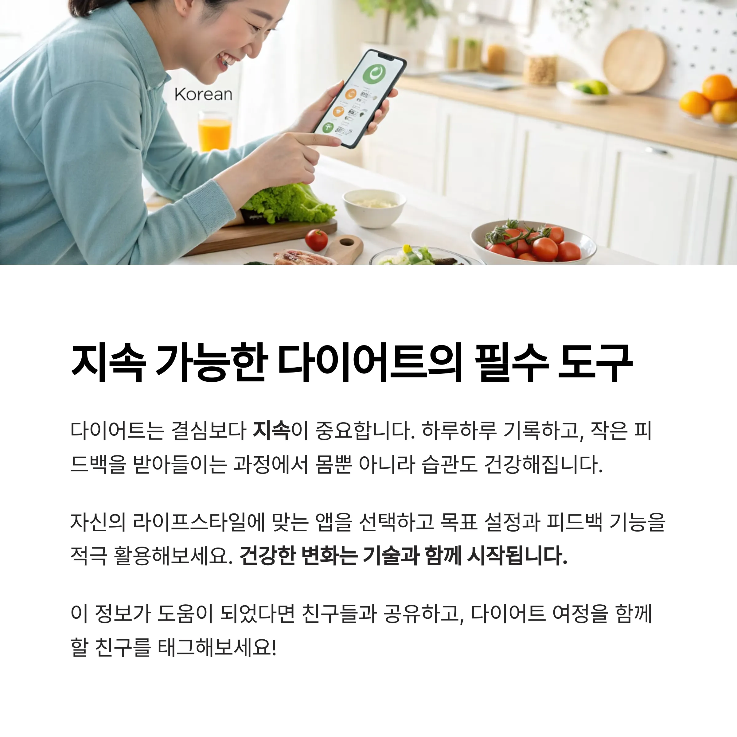 지속 가능한 다이어트를 원한다면, 앱은 필수 도구입니다