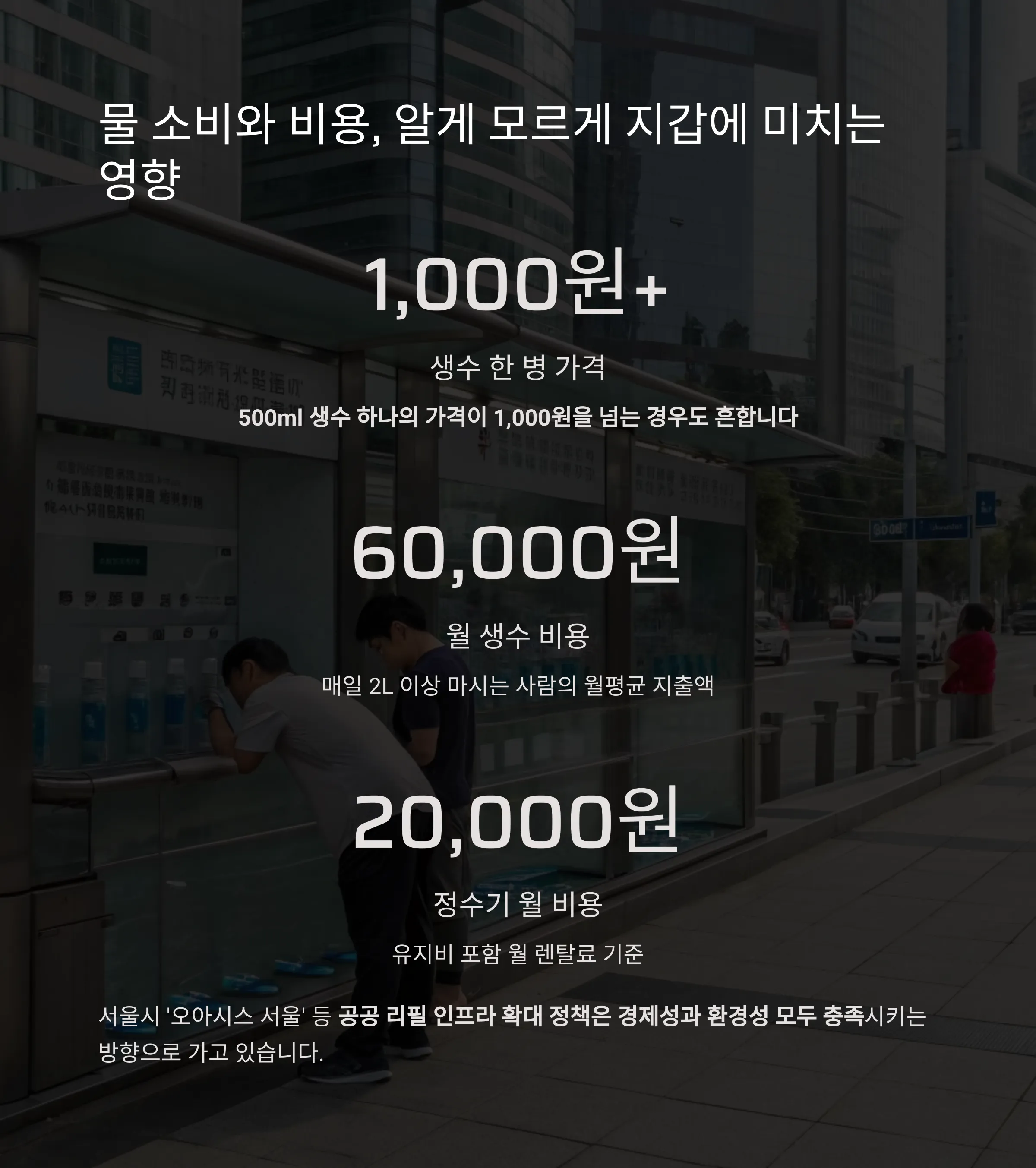 서울시 ‘오아시스 서울’ 등 공공 리필 인프라 확대 정책은 경제성과 환경성 모두 충족시키는 방향으로 가고 있습니다.